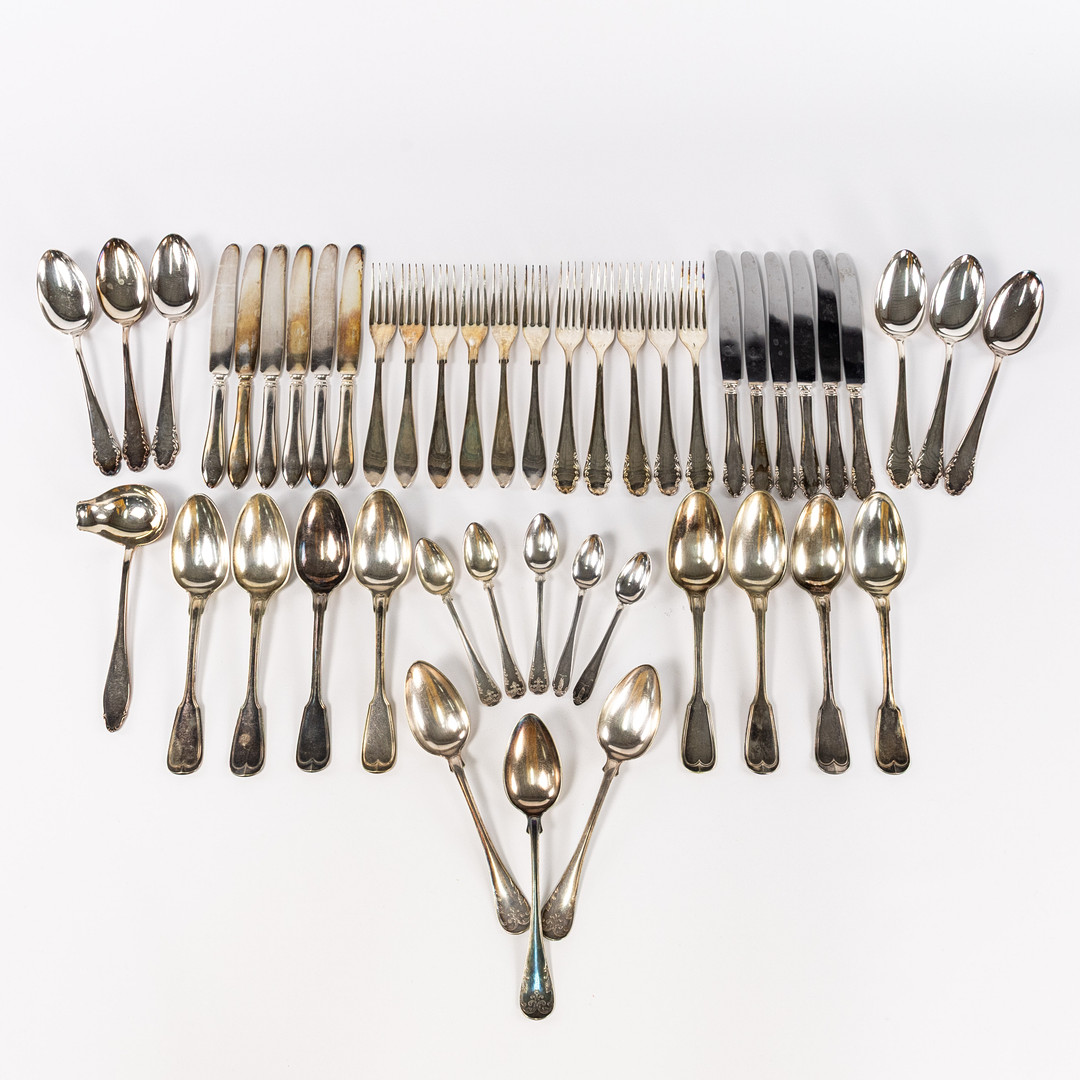 4985174. CUBIERTOS de plata niquelada, un lote.