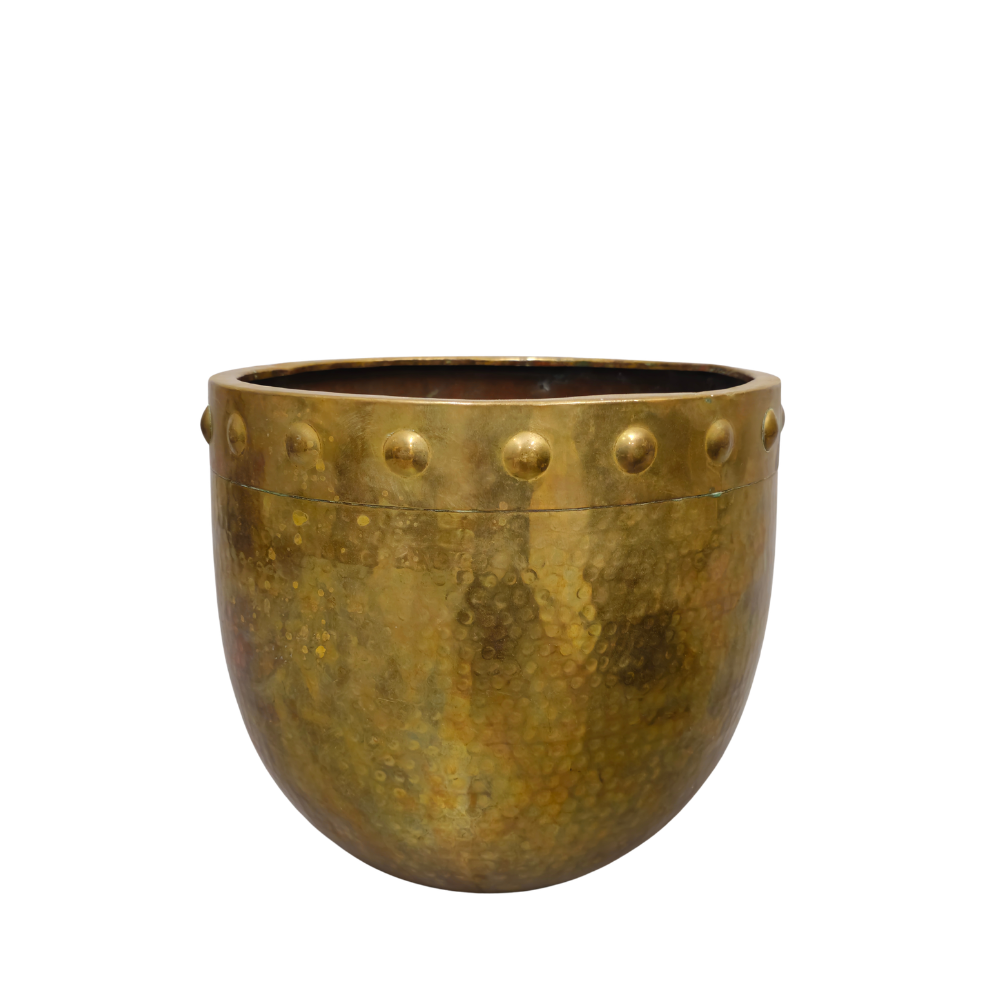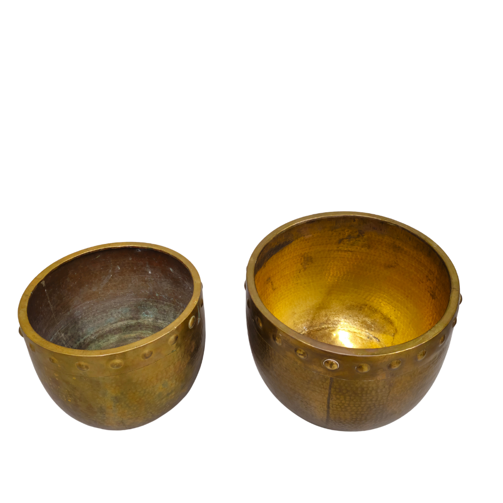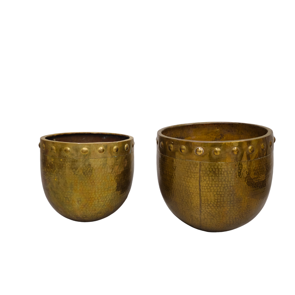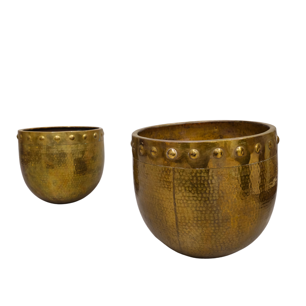 5004467. DOS MACETEROS DE LATÓN TACHONADO.