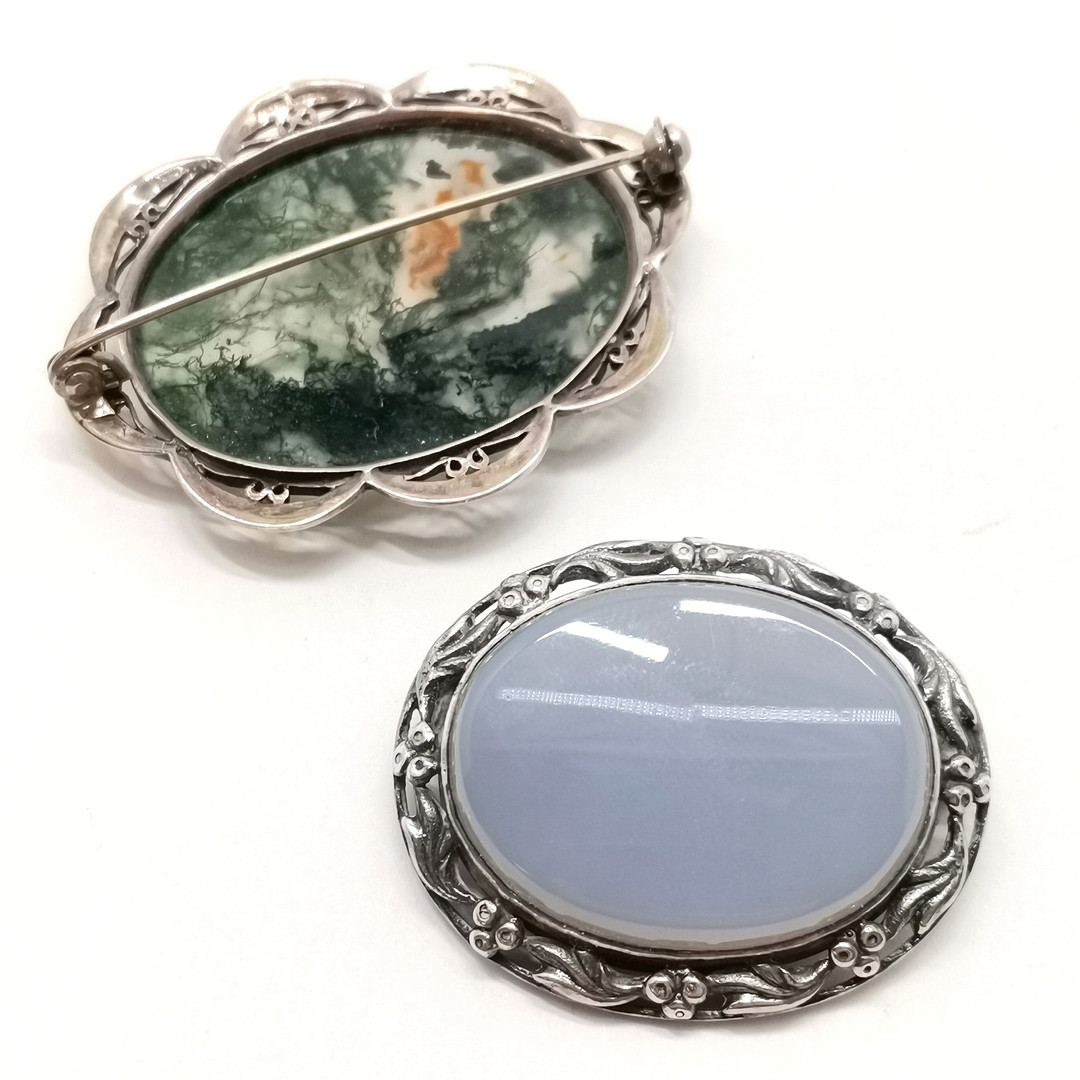 5018378. 2 BROCHES DE ÁGATA PLATEADA DE S&CO.