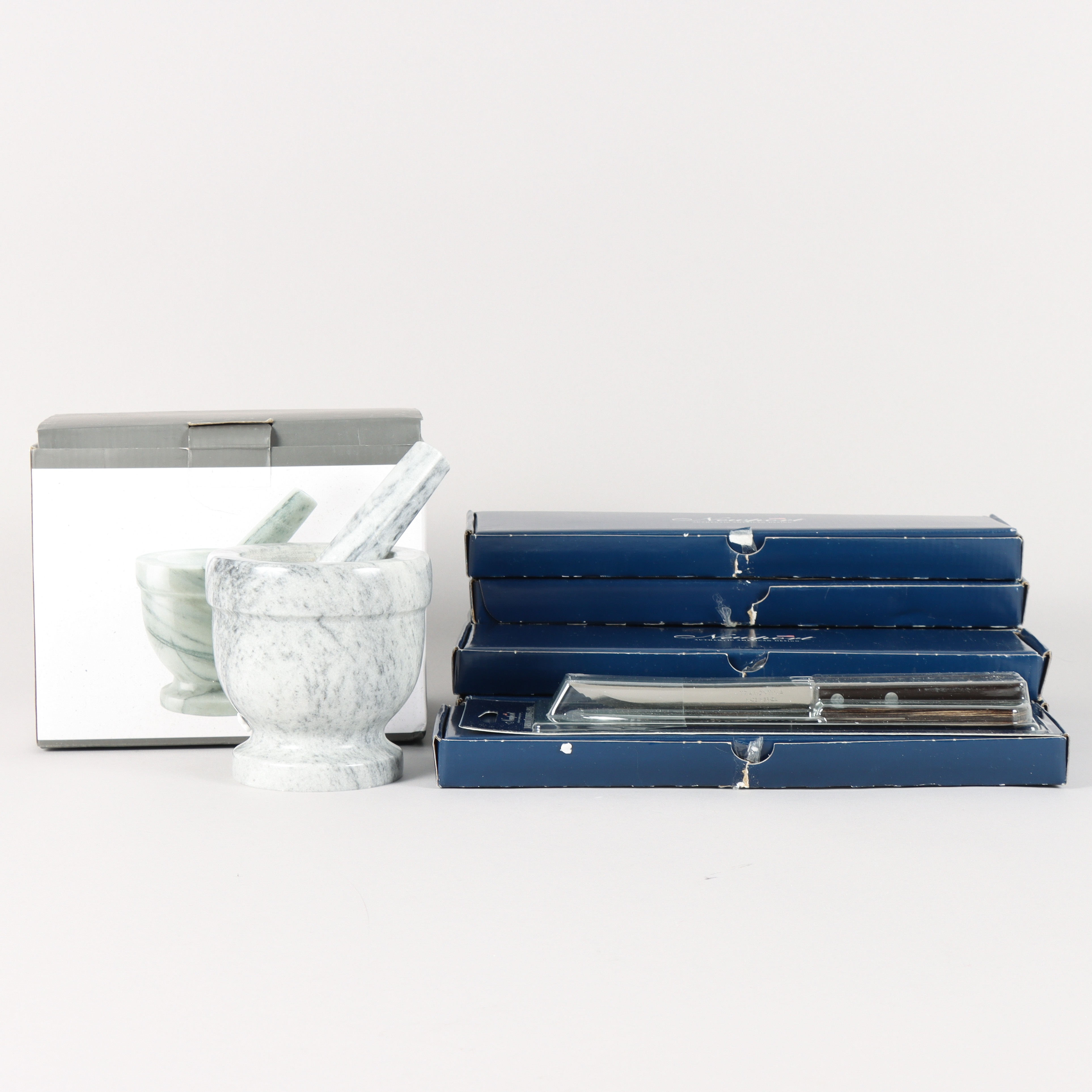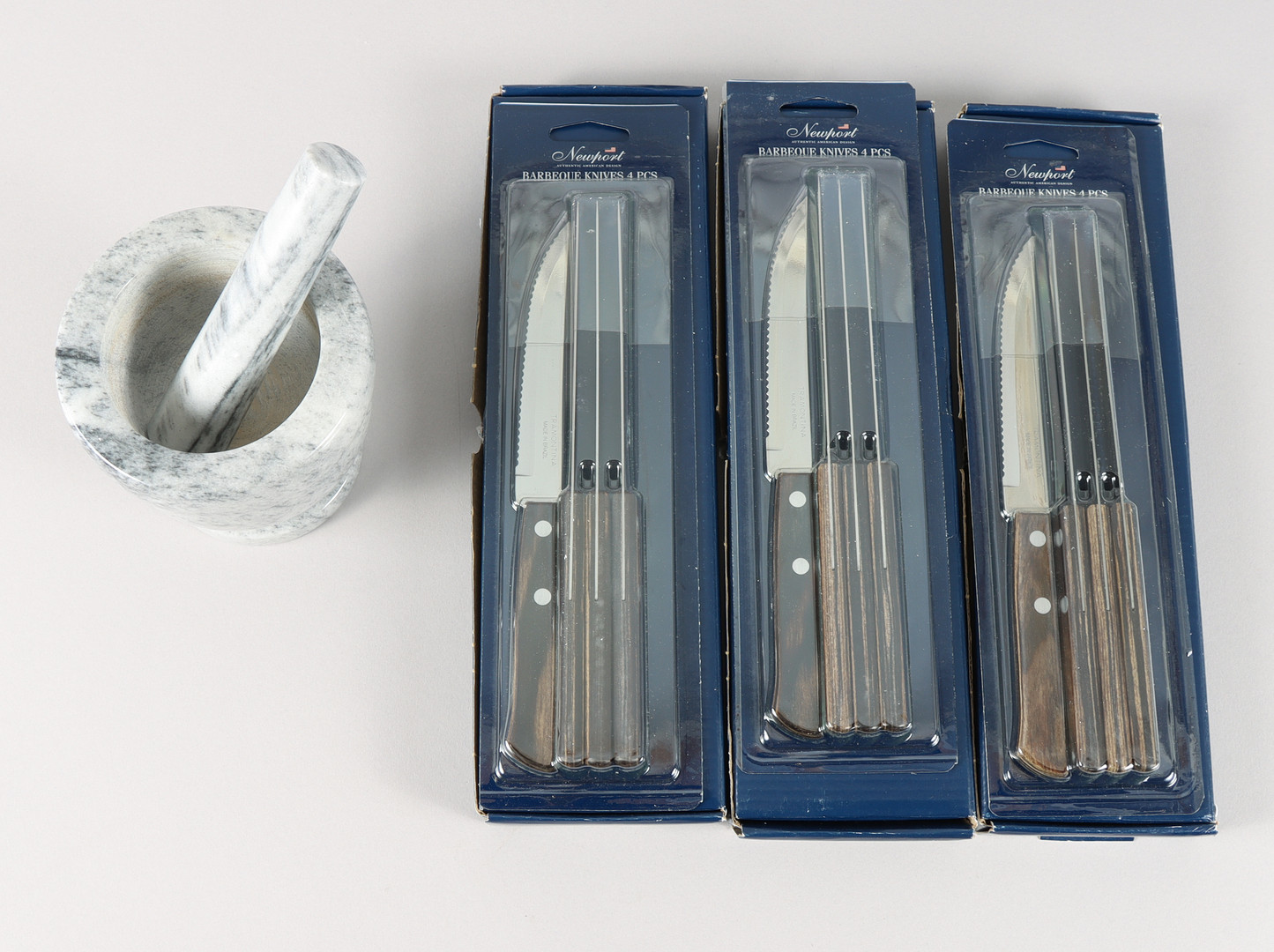 5047994. MORTERO Y CUCHILLOS DE CARNE.