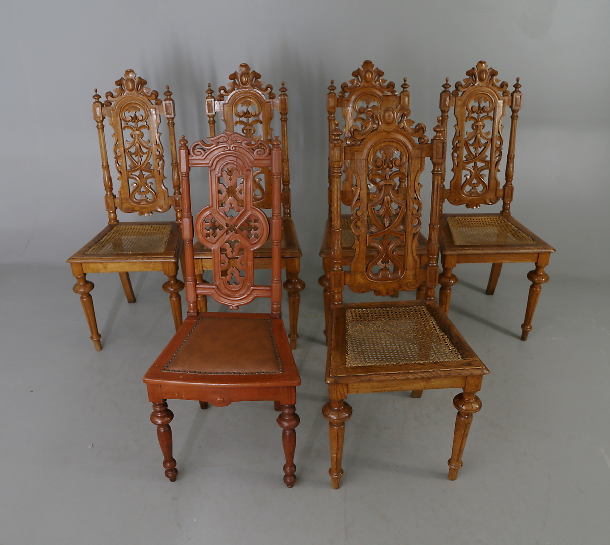 512367. SILLAS, 6 piezas, estilo renacentista, 18/1900.
