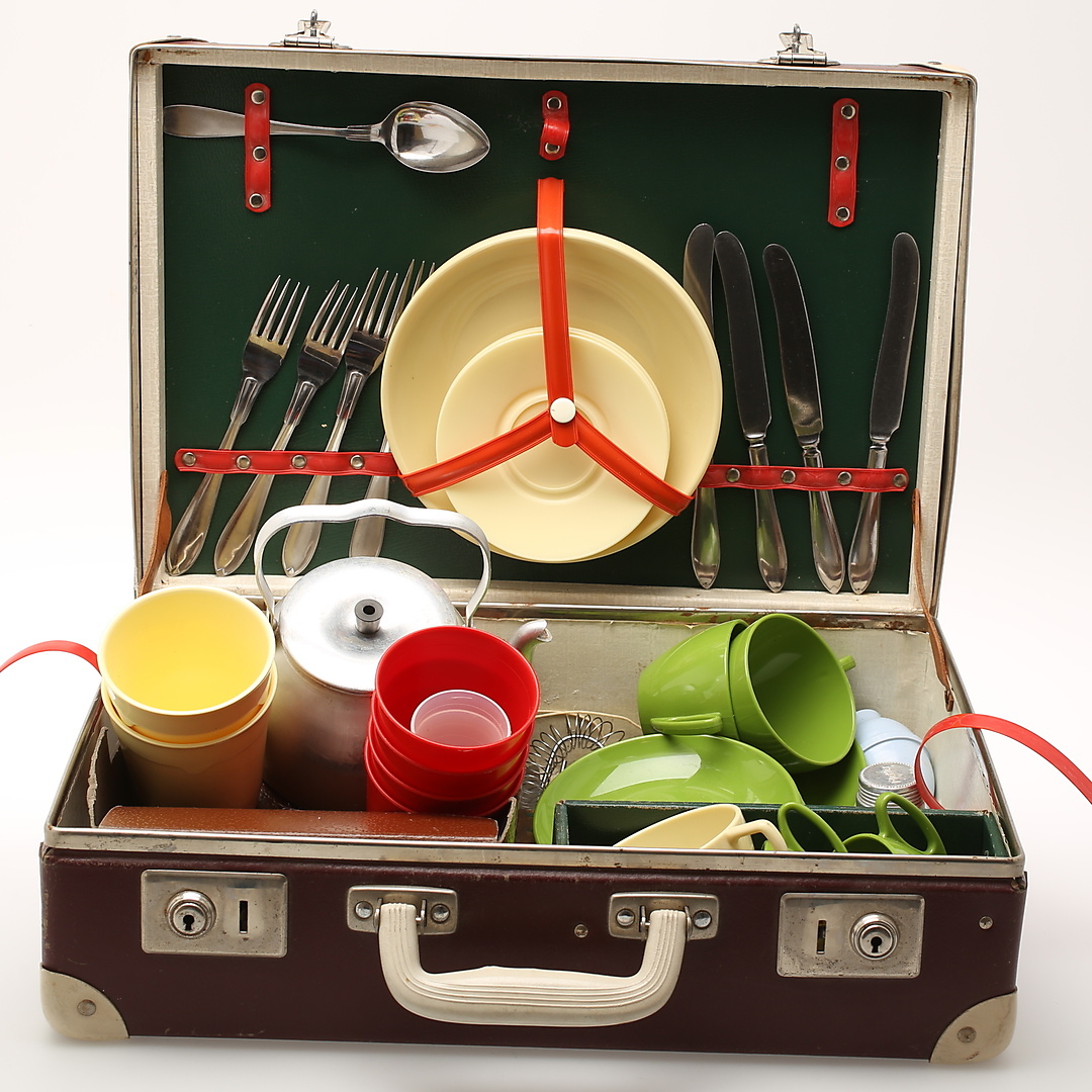 515499. SET DE PICNIC en bolsa, plástico, años 60.