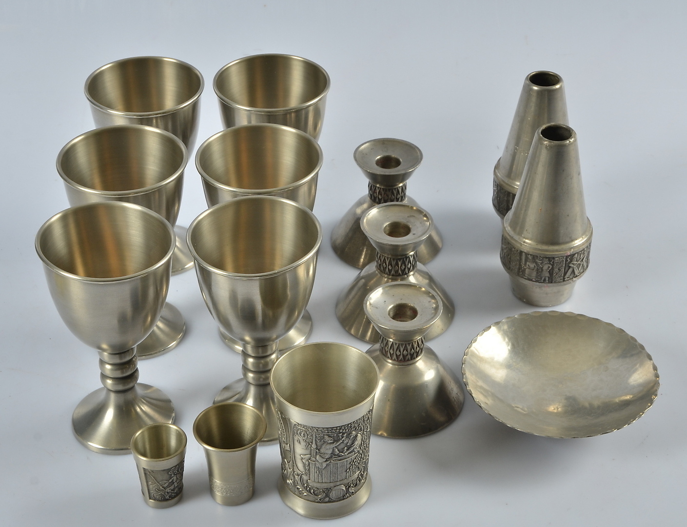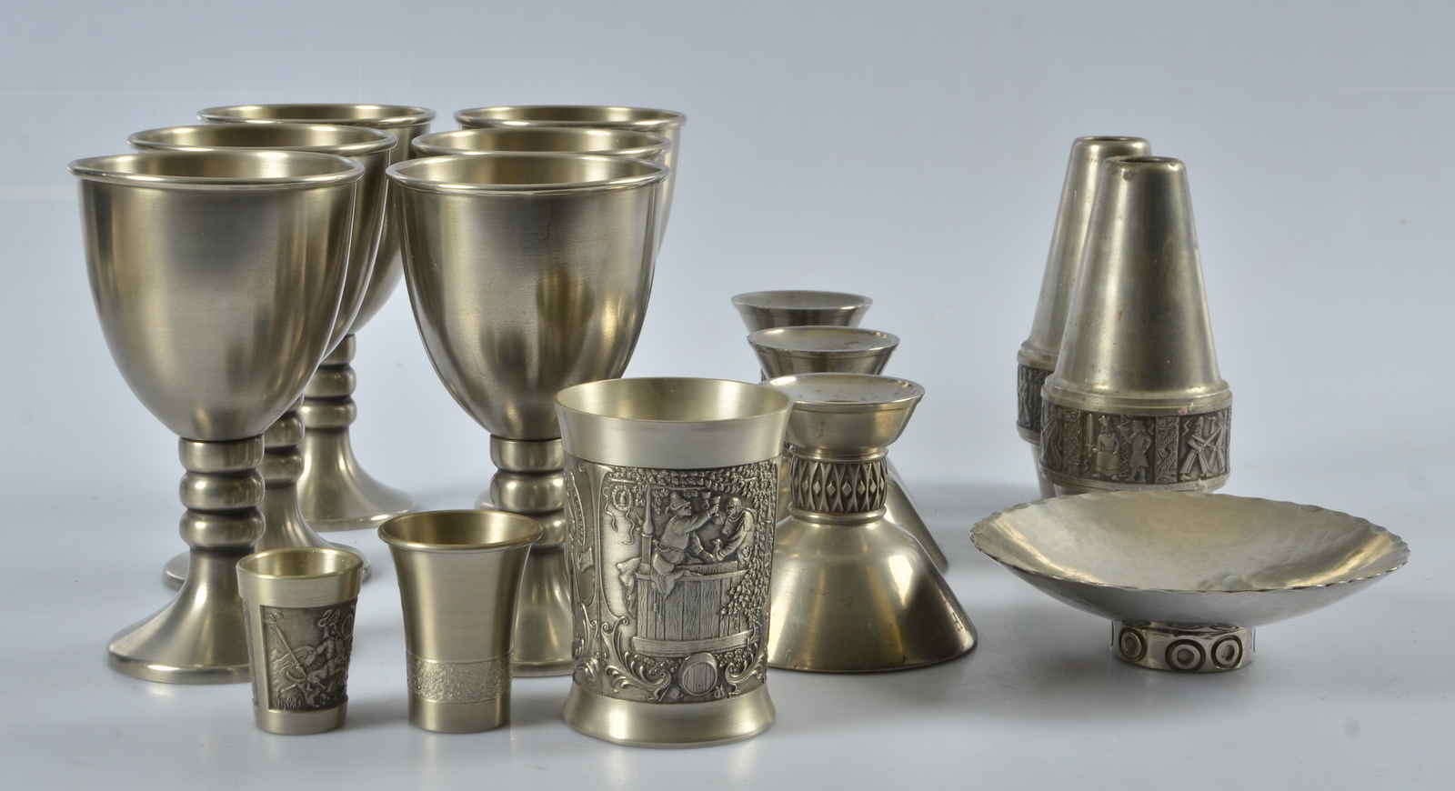 523563. OBJETOS DE ESTAÑO, 15 piezas, 1900.