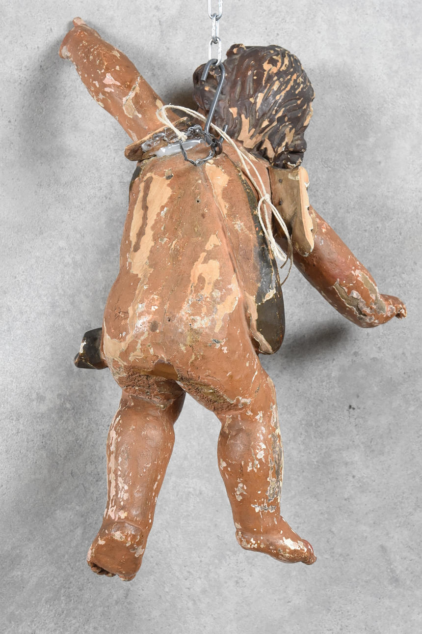 Querubín, tallado en madera, pintado 16-1700 Alto 55 cm.