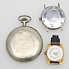 Eterna-Matic con cristal rayado y no arranca, Omega le falta cristal y tampoco arranca. Ciny estaba trabajando en el momento de la catalogación. No se proporciona ninguna garantía funcional.