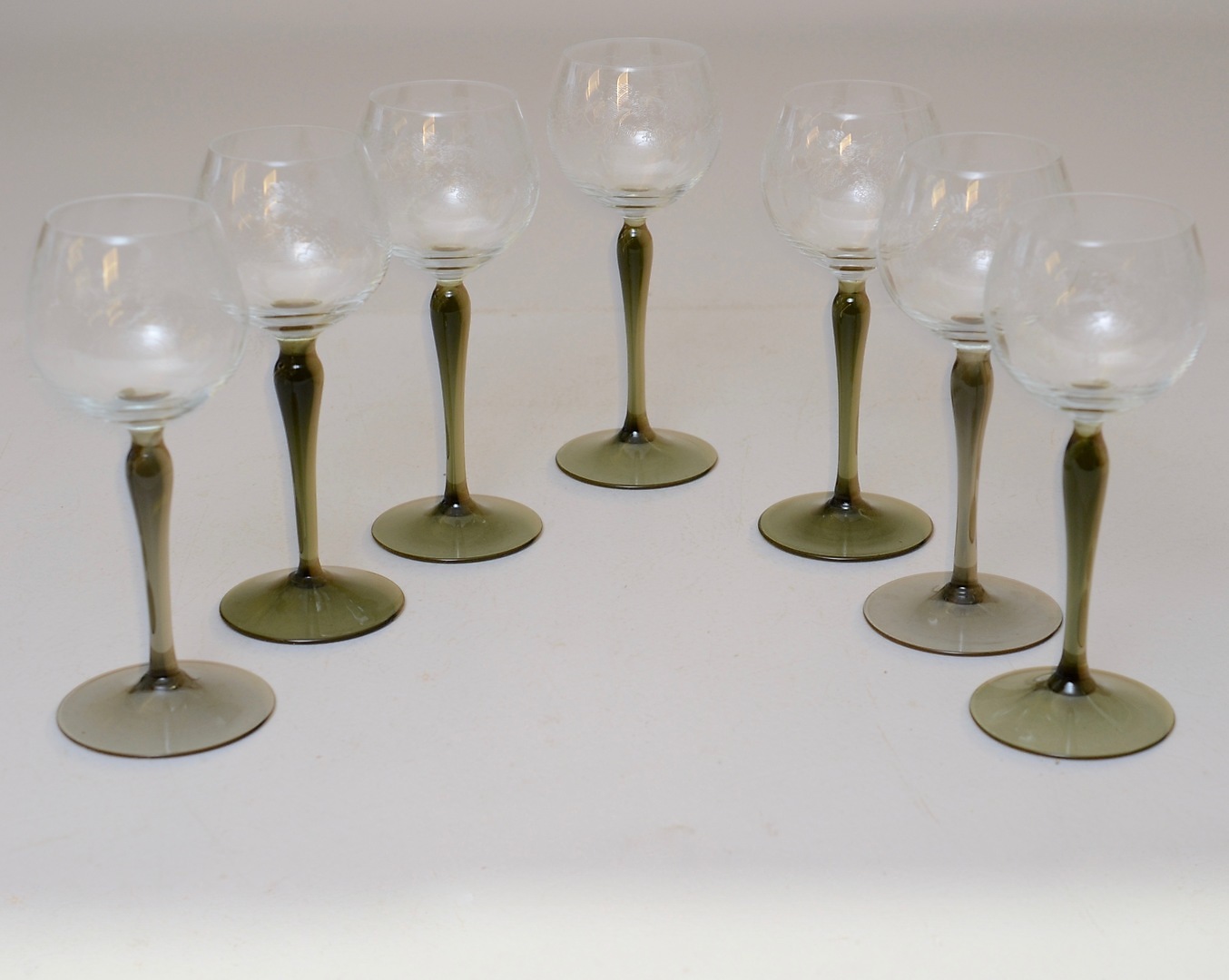 539368. COPA DE VINO BLANCO, pie tintado en verde.