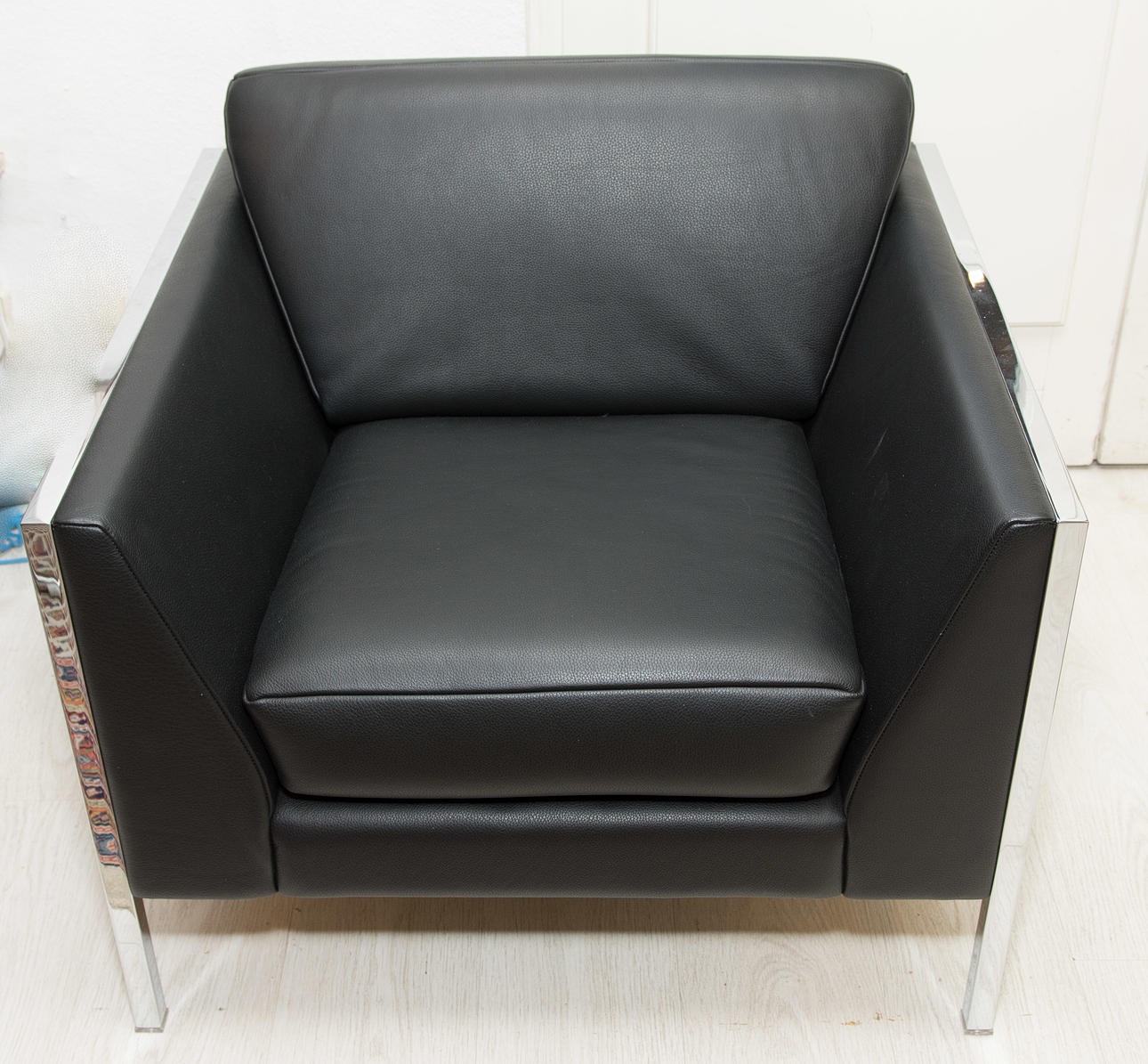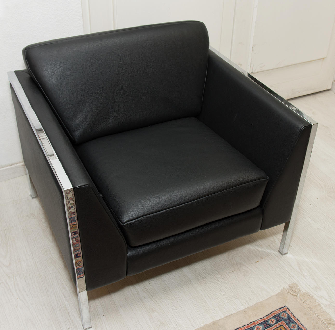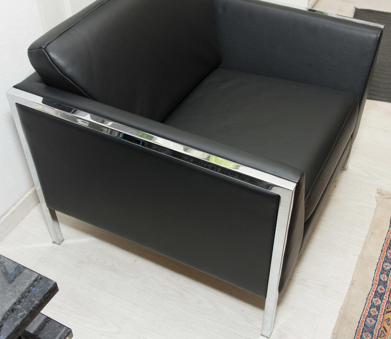Butaca de la firma "de Sede de Suiza", tapizada en piel negra, estructura cromada en alto brillo, modelo "DS-540 (WK-600).