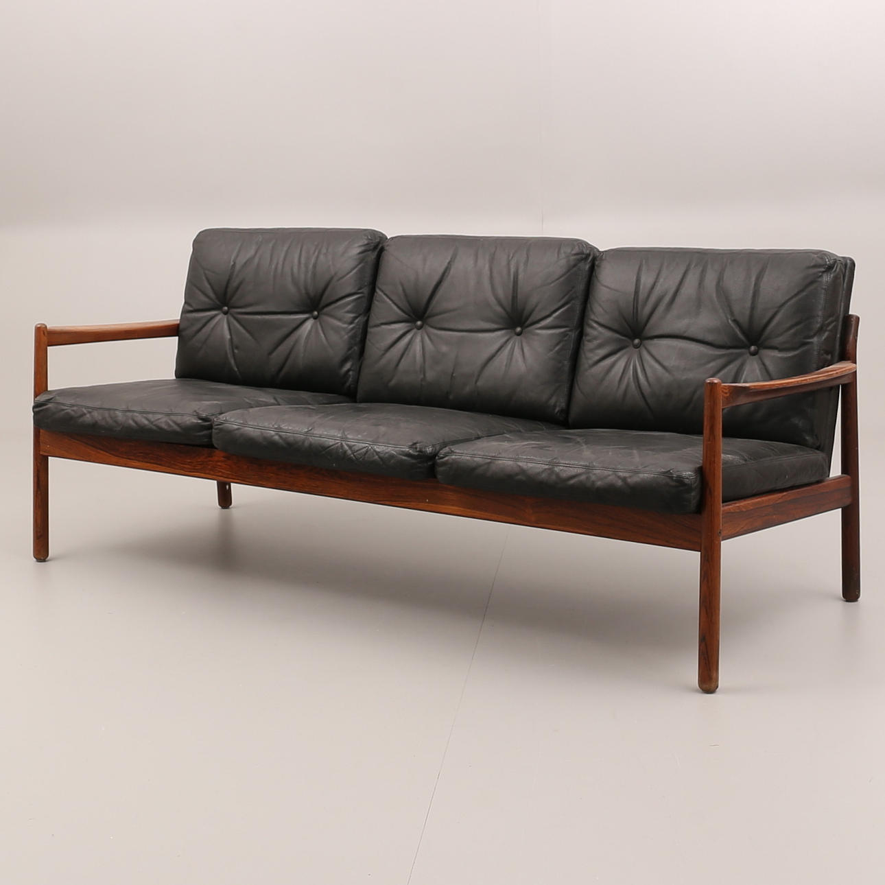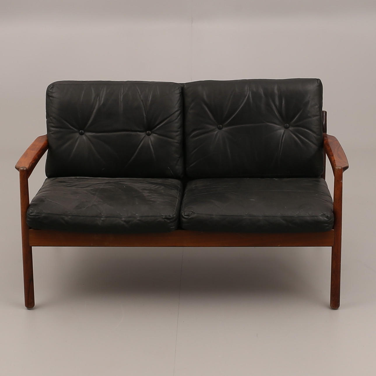 Cojines en cuero negro y estructura en palisandro.