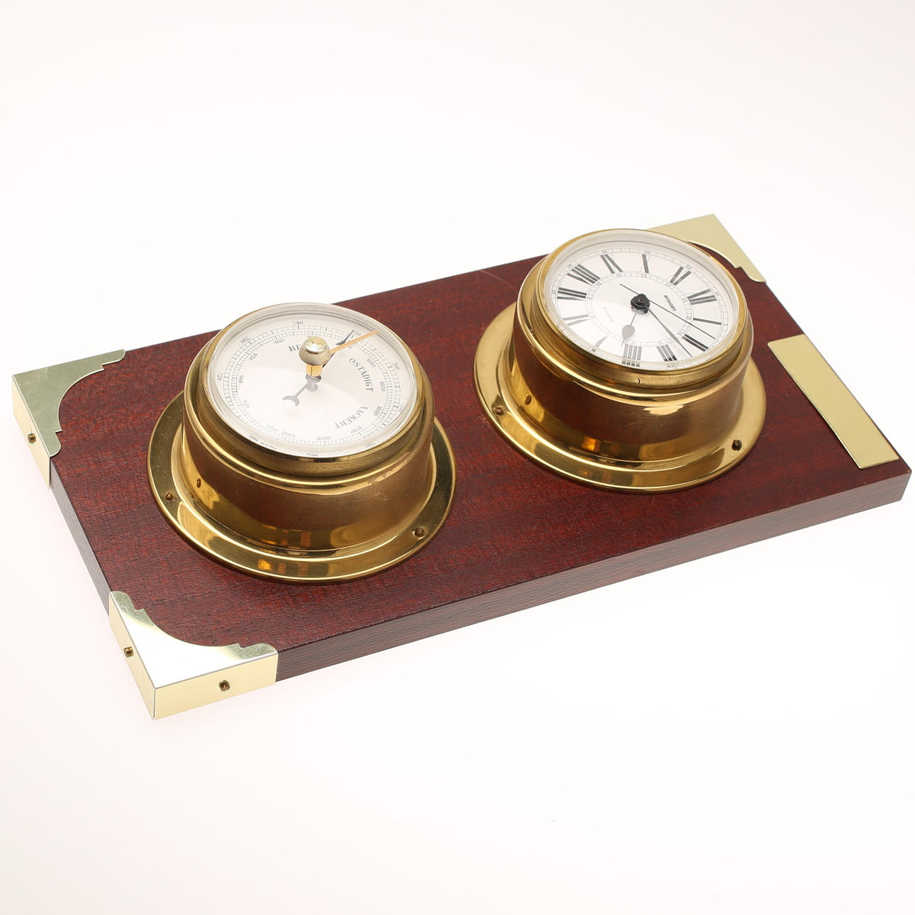 Latón montado sobre placa de madera.