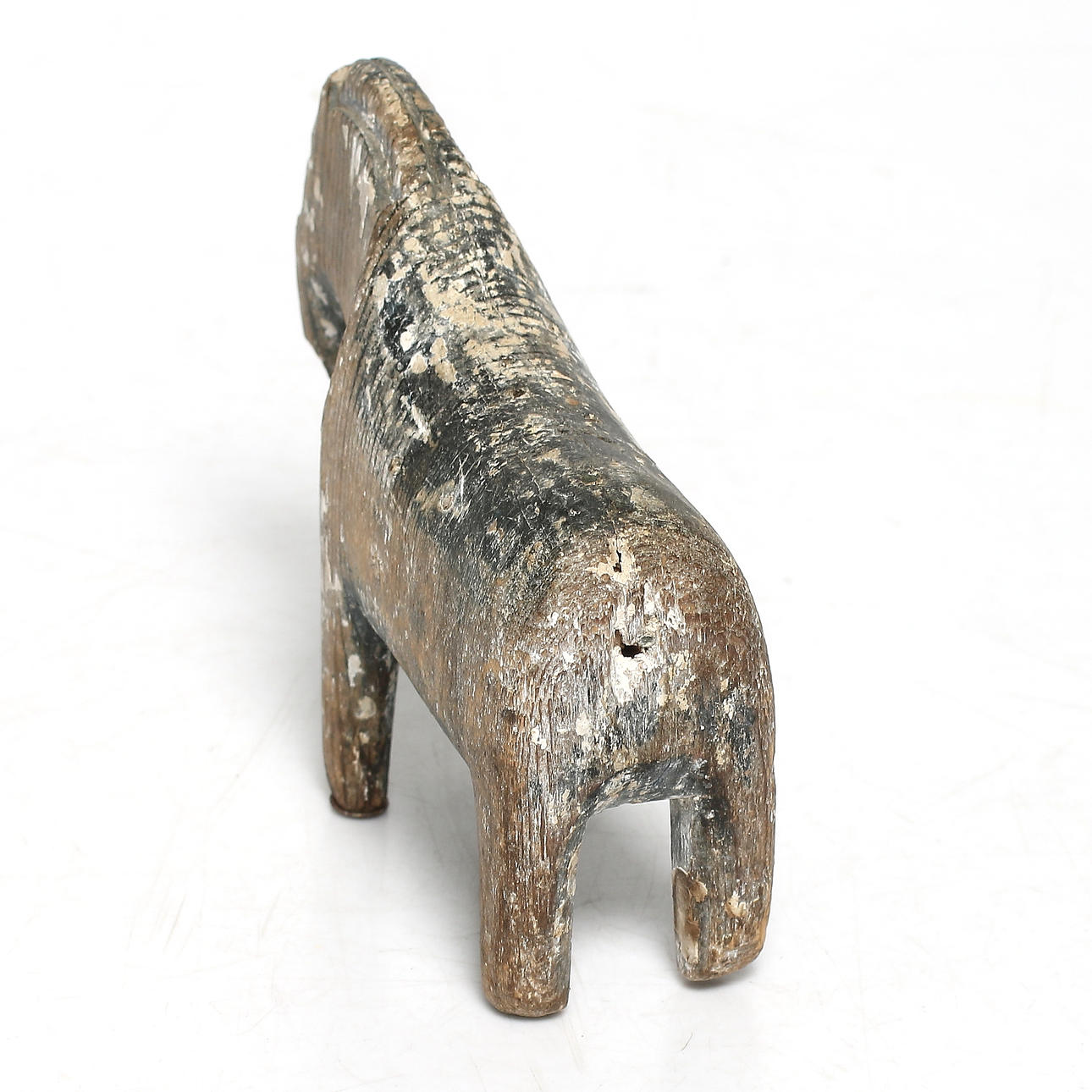 Uso y desgaste relacionado con la edad. Patas desgastadas, pintura desgastada, cola faltante.