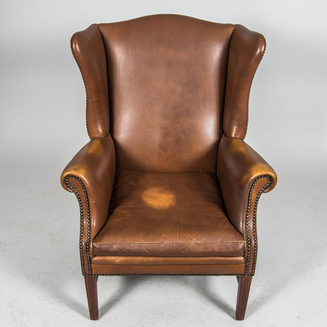 587386. SILLÓN EAR LAPCH, cuero marrón, estilo inglés.