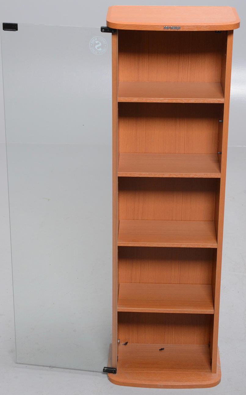 Tres con puertas de cristal. Alto 115 cm, ancho 36 cm, profundidad 22,5 cm.