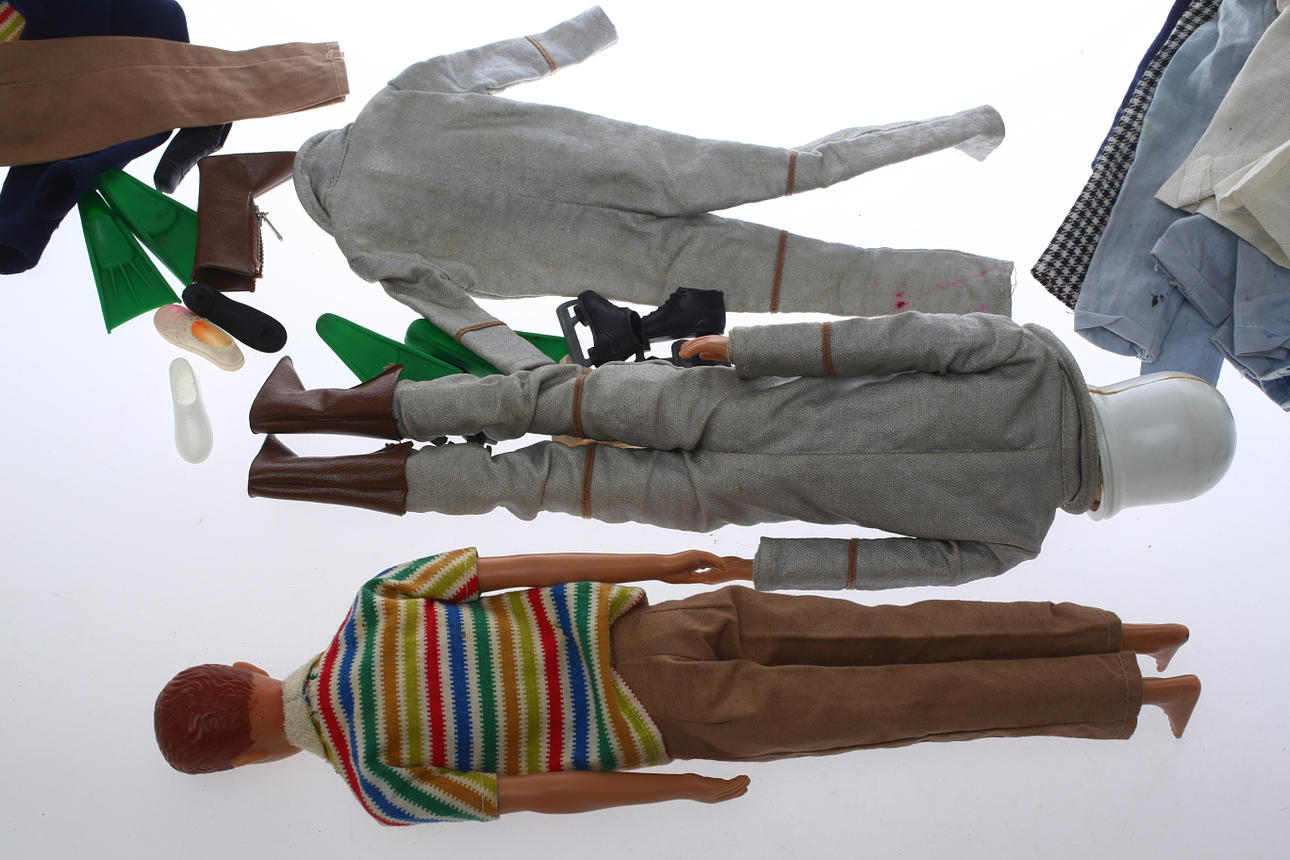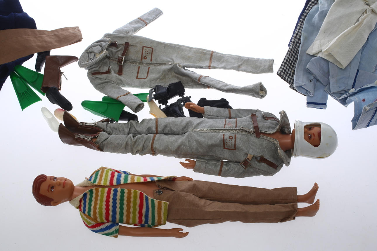 Incluye ropa parcialmente marcada como Mattel para Ken y dos camisas para Allan.