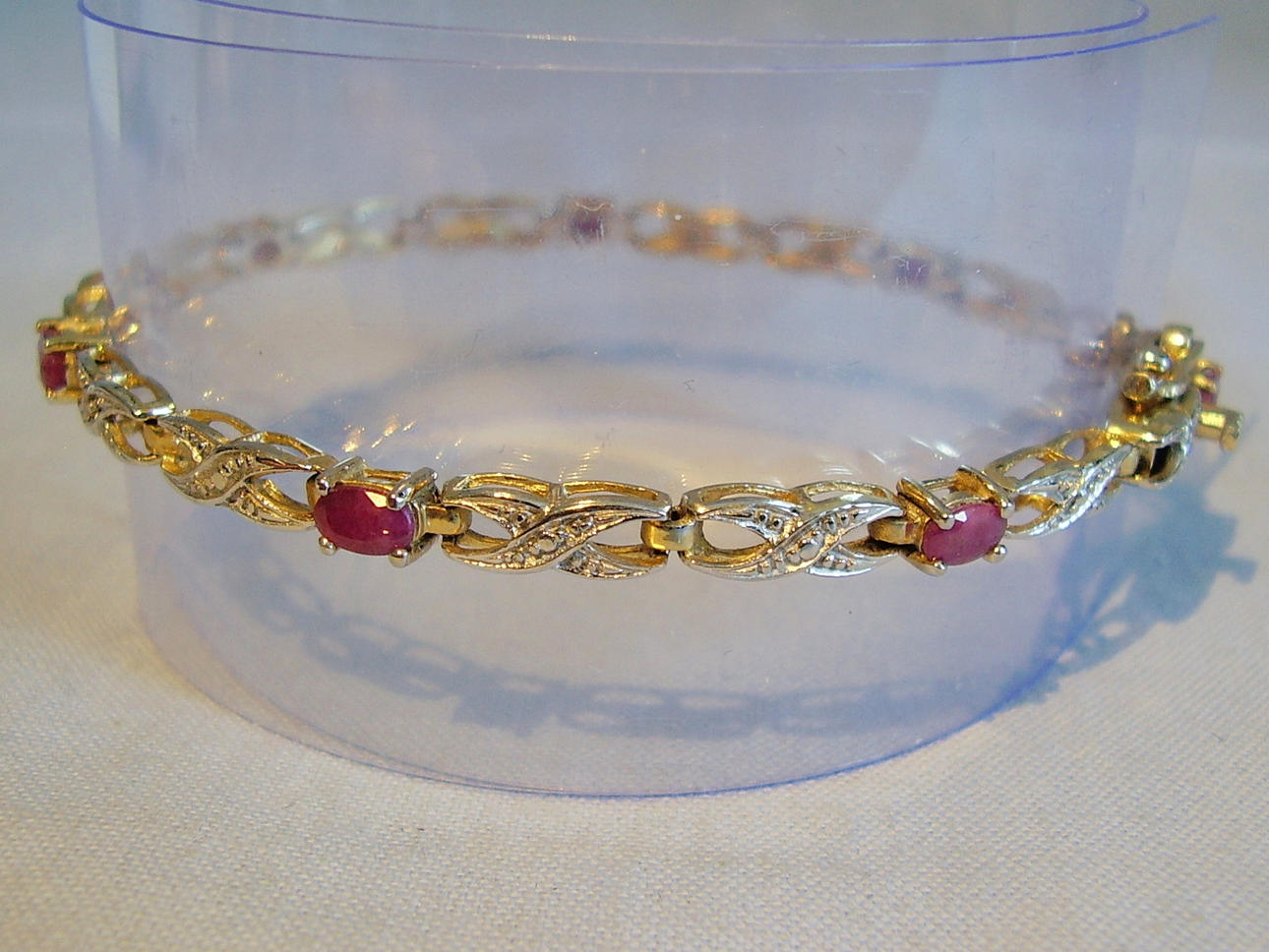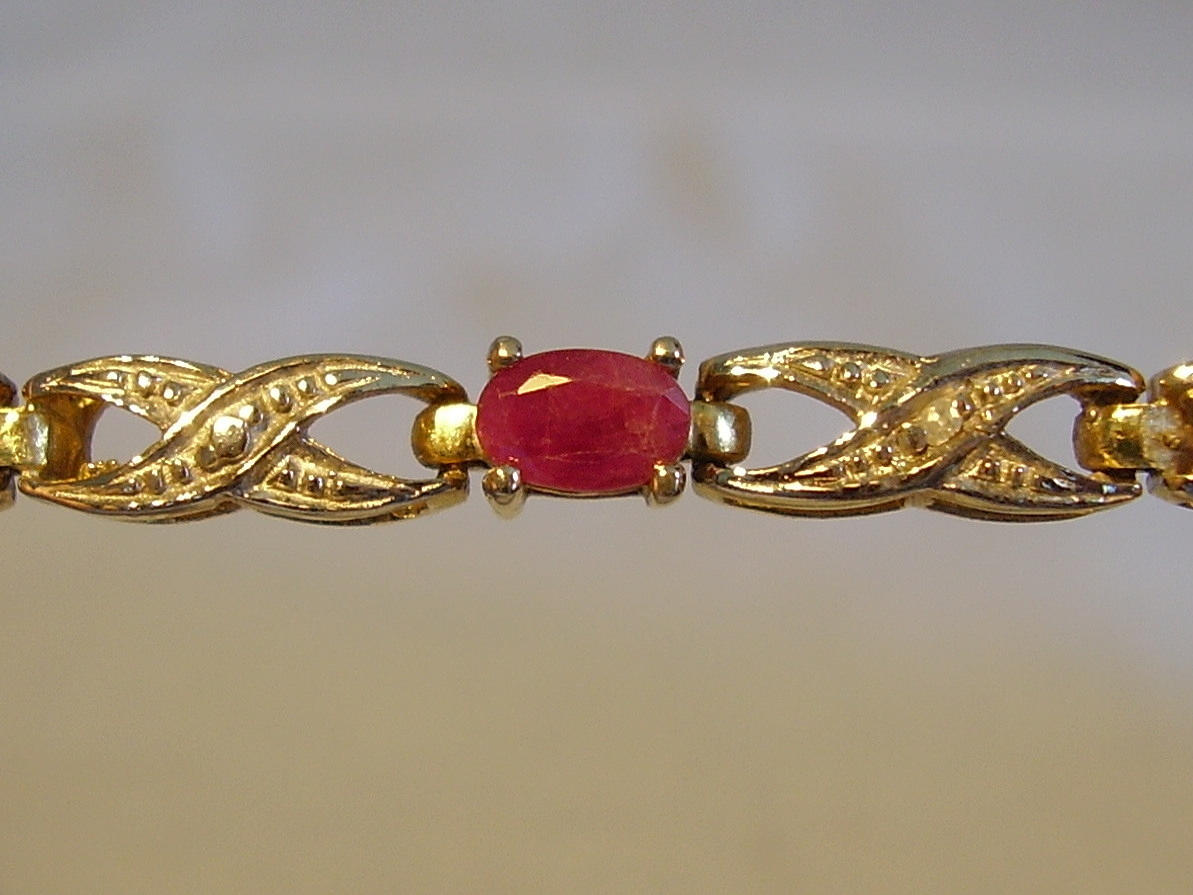 El brazalete está engastado con 7 rubíes facetados ovalados por un total de 3,15 ct y 2 diamantes talla 8/8 por un total de 0,010 ct.