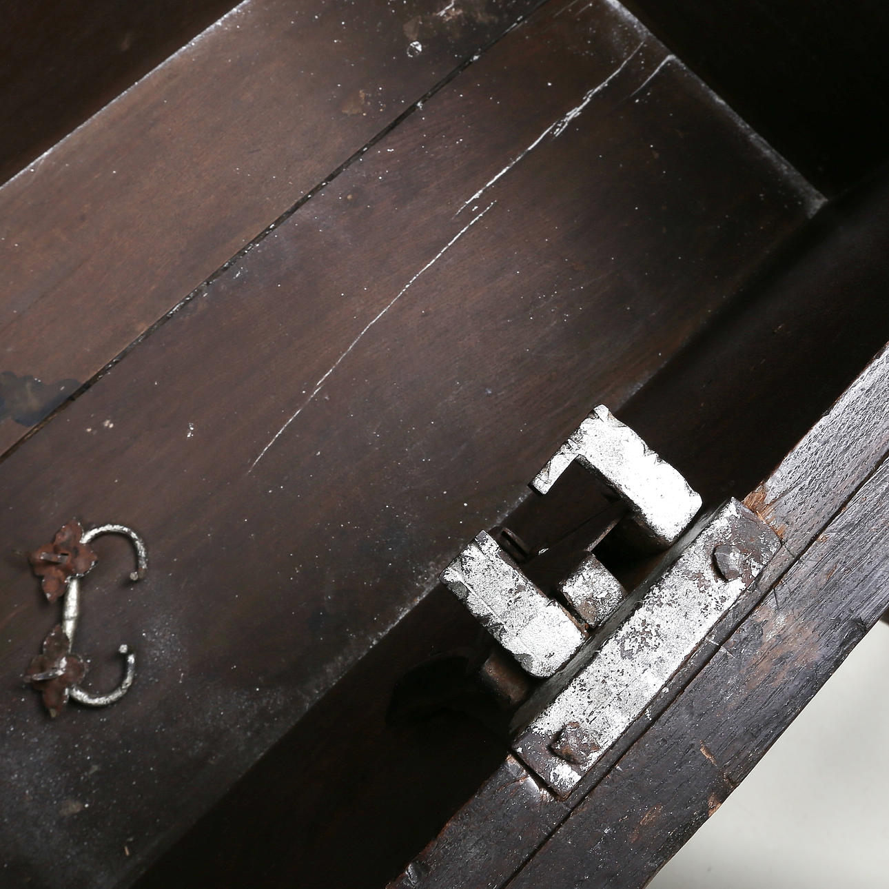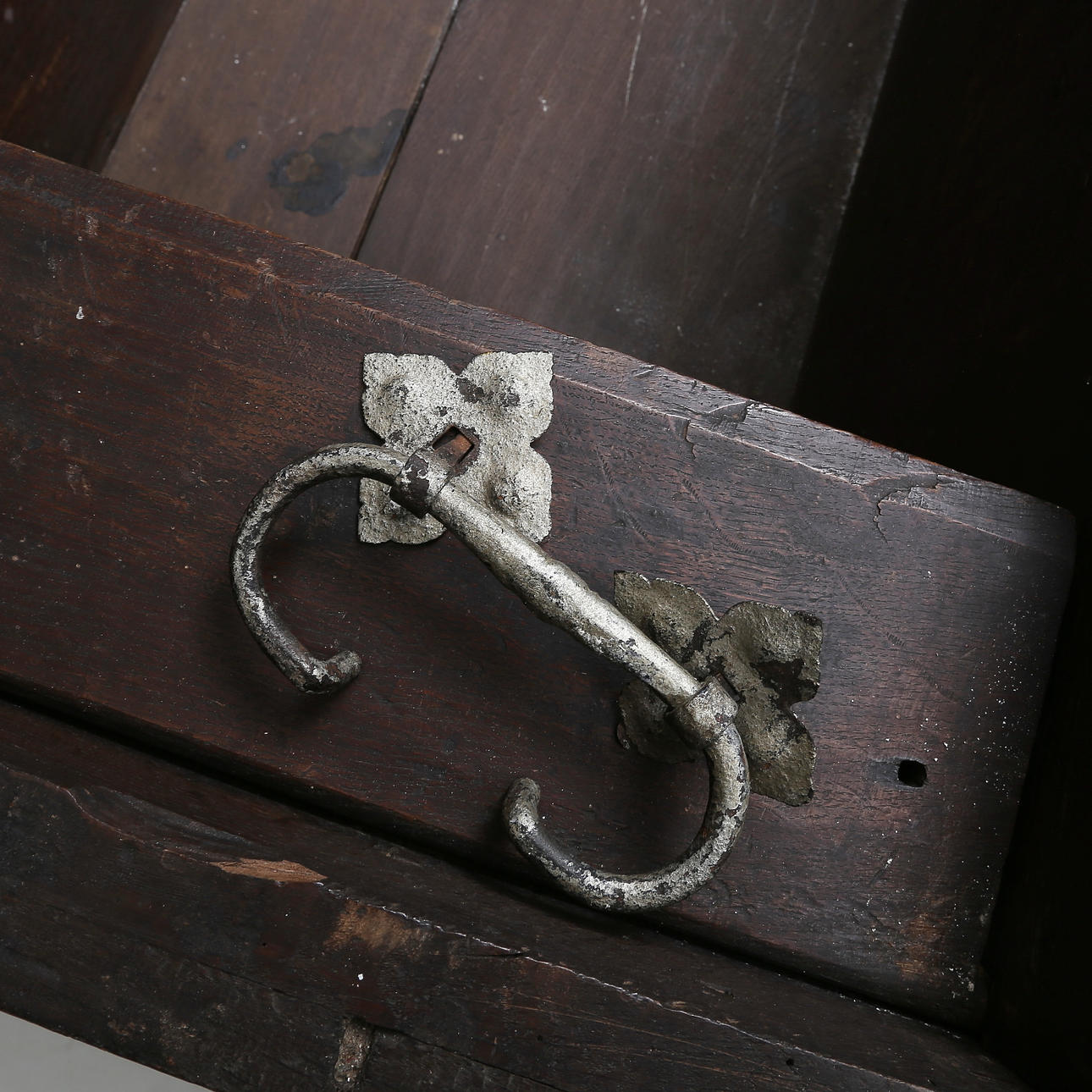 Desgaste relacionado con la edad. Rastros de infestación de plagas. Un mango suelto. Terminado.