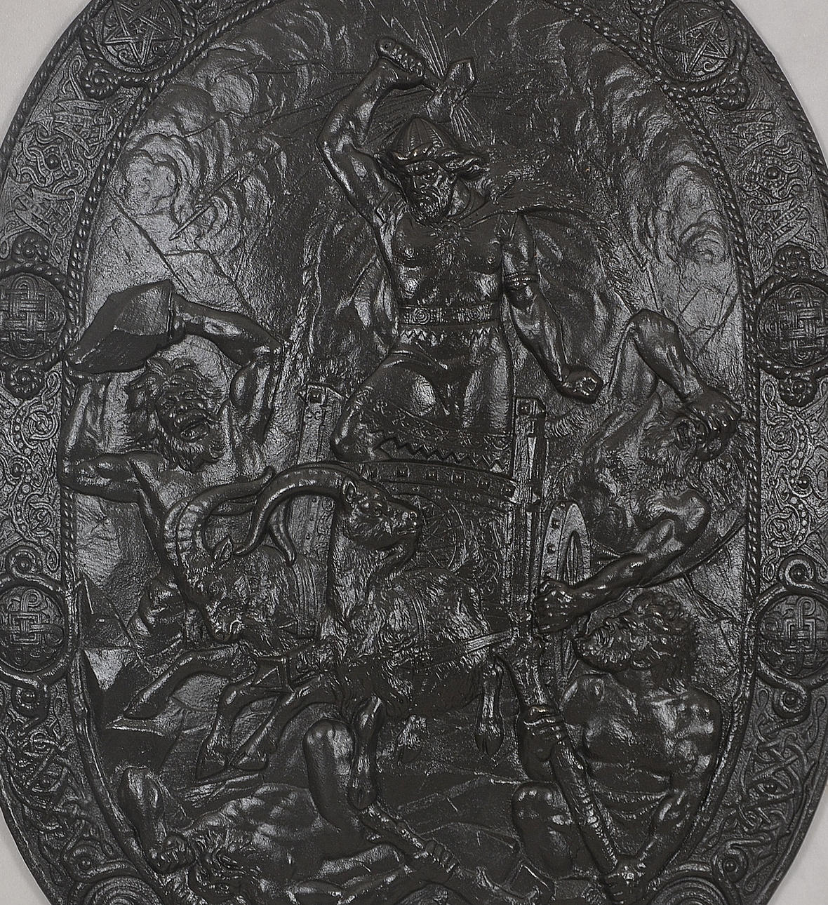 653368. ESCUDO DE HIERRO FUNDIDO, martillo de Thor, 1900.