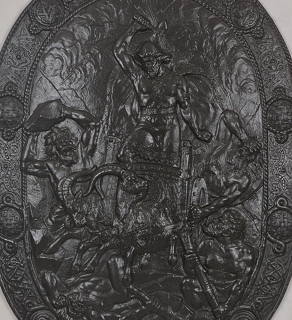 653368. ESCUDO DE HIERRO FUNDIDO, martillo de Thor, 1900.