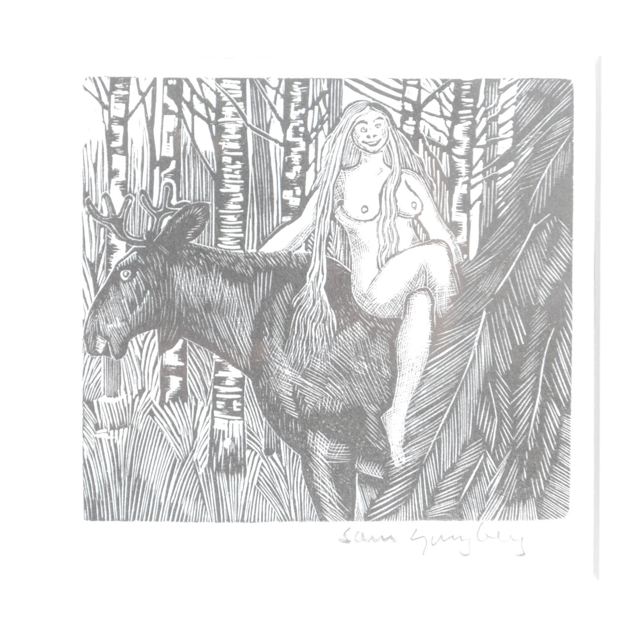 SAM LJUNGBERG. Xilografía, mujer desnuda.