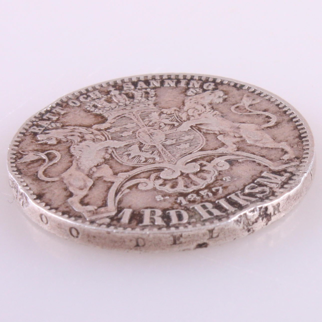 711729. MONEDA, 1 riksdal, plata, 1857, Oscar I, perilla larga.