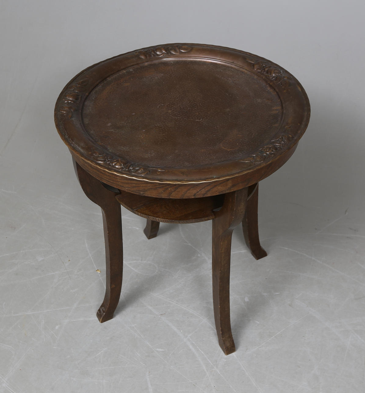 Roble, disco en cobre, diámetro aprox. 59, altura 65cm.