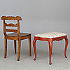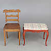 Silla, altura del respaldo aproximadamente 76 cm Taburete, longitud 57 cm, ancho 36 cm, altura aproximadamente 45 cm.