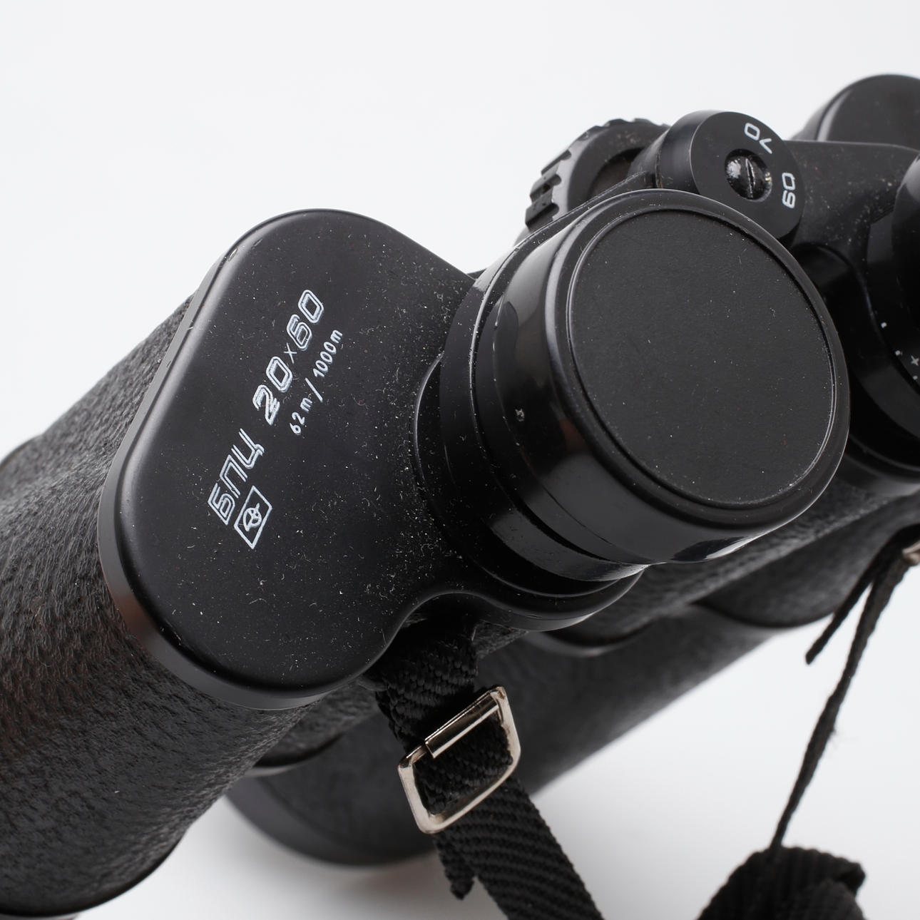 1 binoculares de la marca "TENTO", marcados como "БПС 20 x 60", probablemente fabricados en la Unión Soviética, con estuche adjunto.