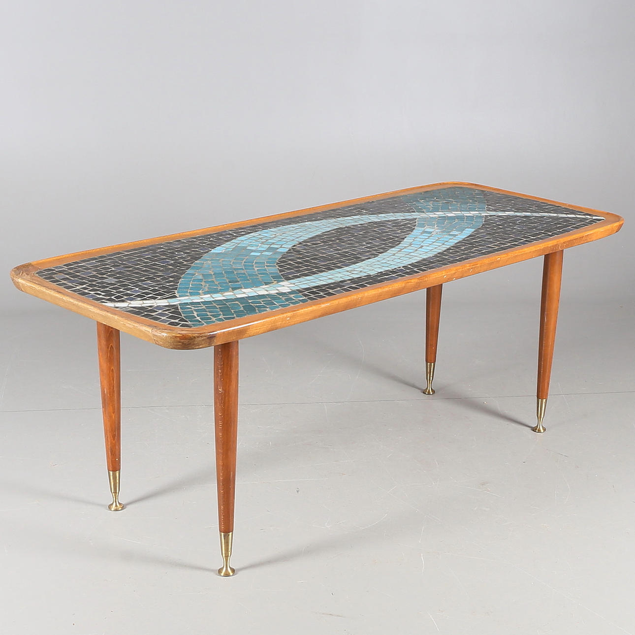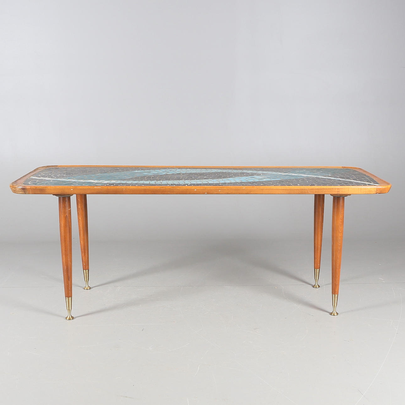 768911. MESA DE CENTRO, teca/baldosas, años 50/60.