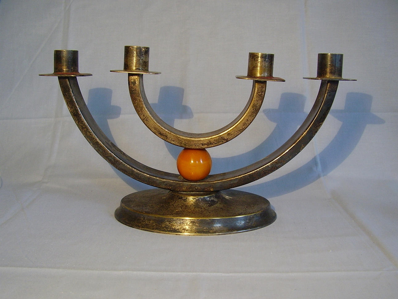 Pieza antigua Art Deco original con pátina relacionada con la edad y leves signos de uso (cera de vela).