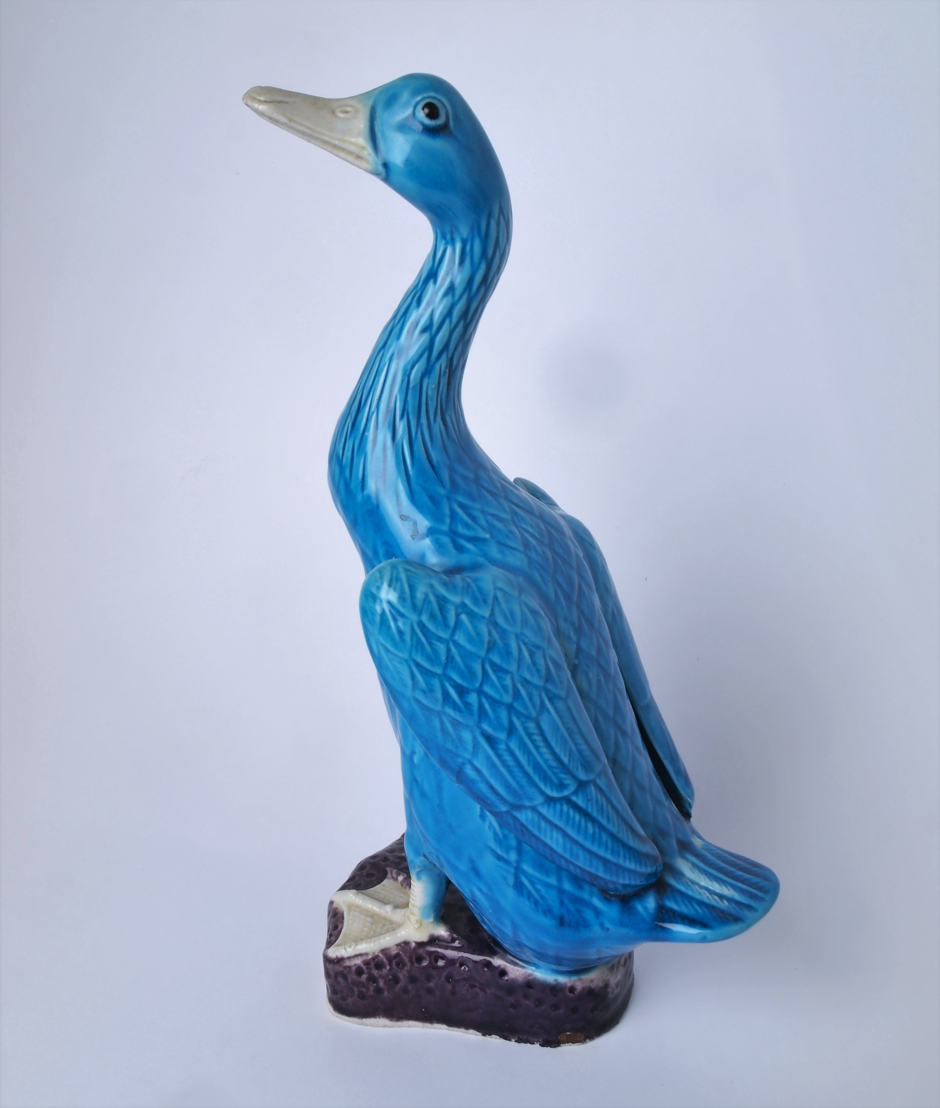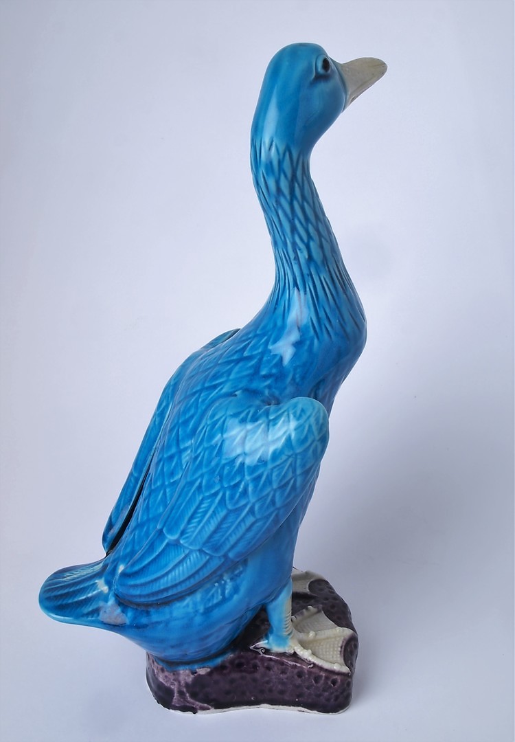 776592. PATO EN PORCELANA ESMALTADA AZUL.