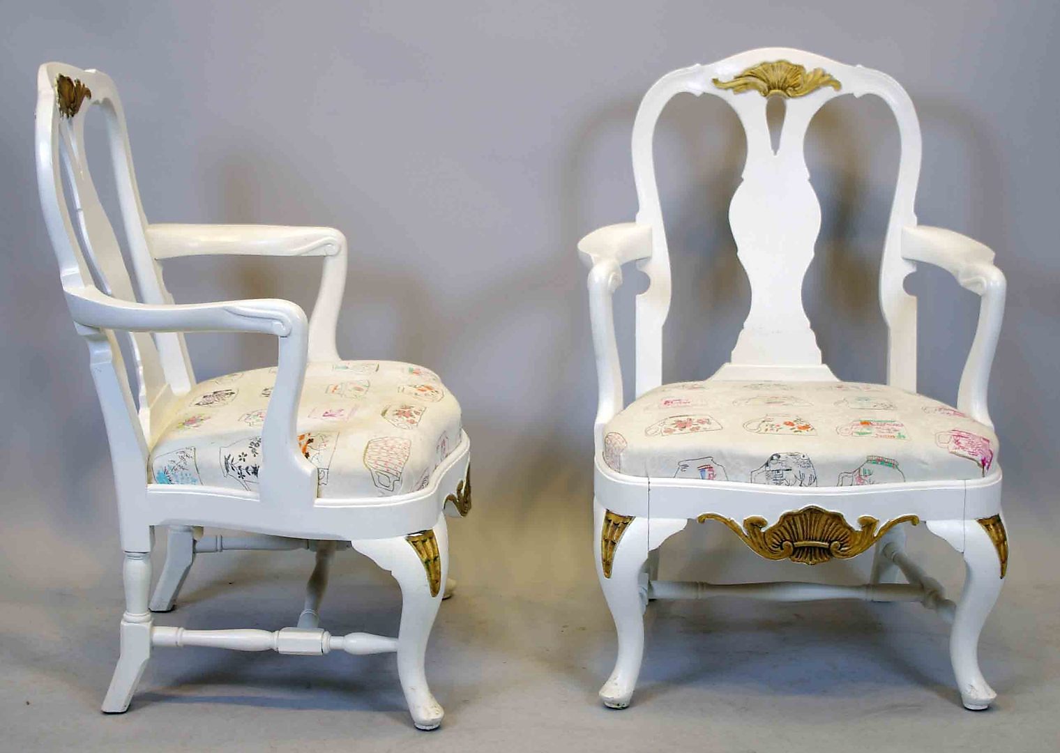 77666. SILLONES, 2 piezas, pintados de blanco, estilo rococó.