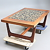 MESA DE CENTRO, madera exótica. Disco con piedras incrustadas.