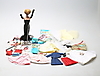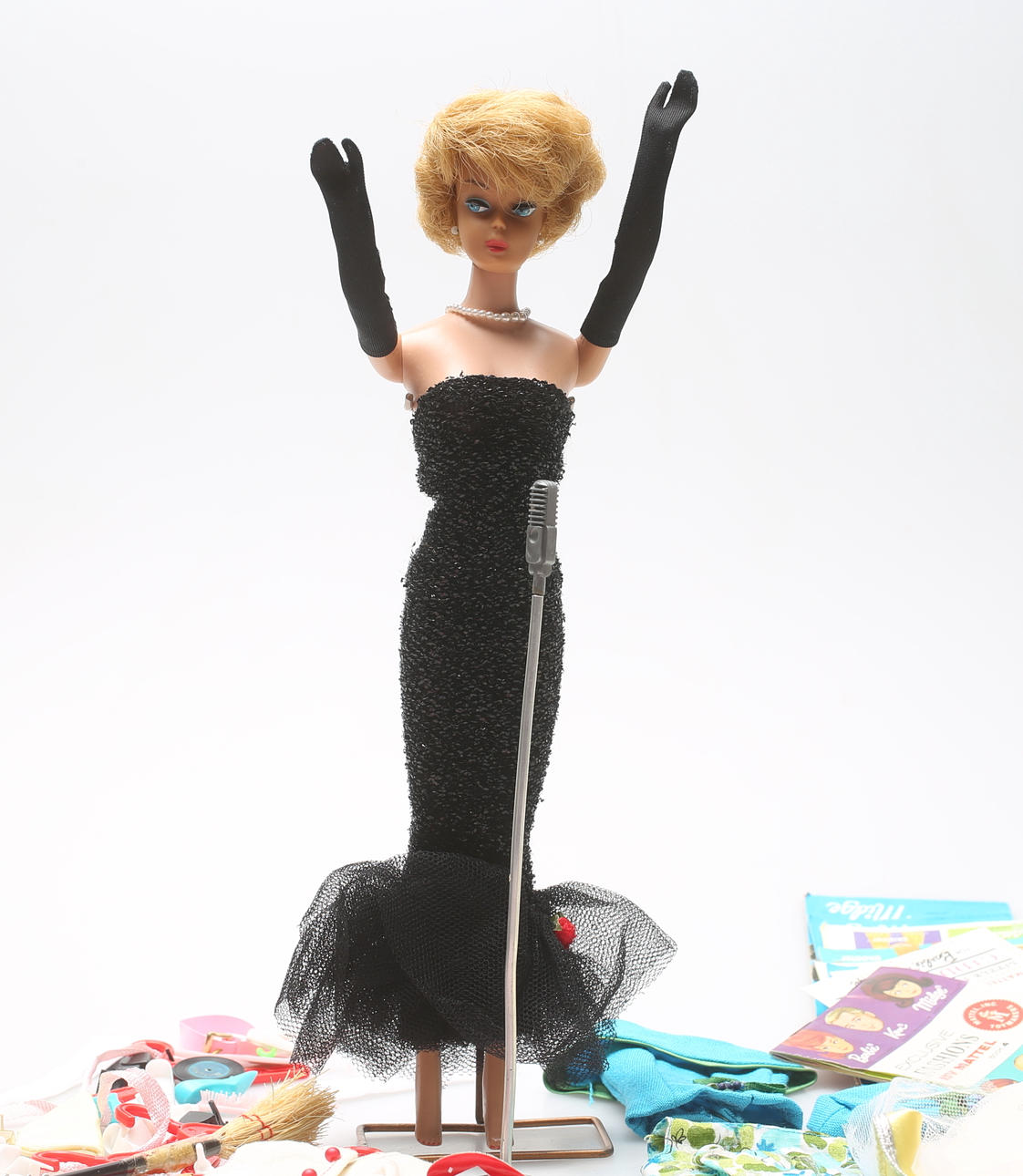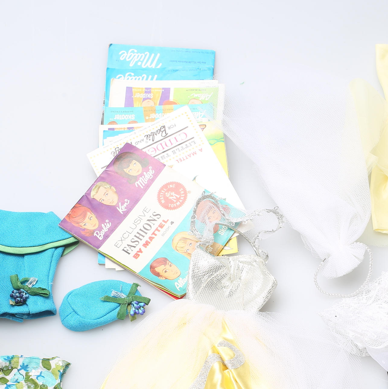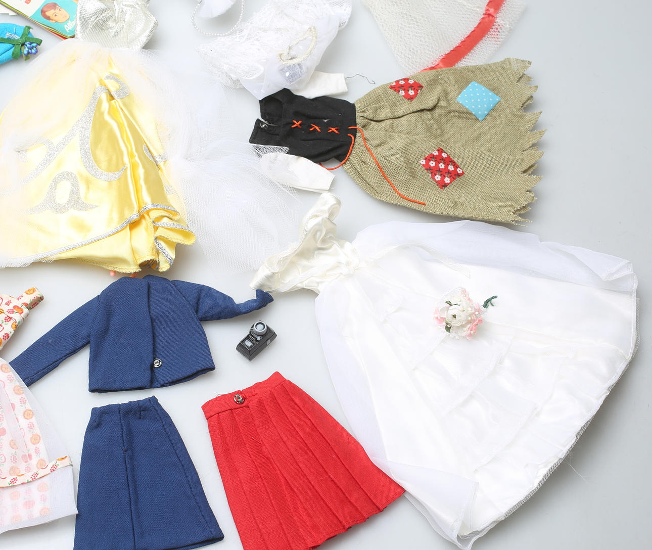 Sobre todo ropa de Barbie, Mattel. Algunas prendas marcadas "Hecho en la colonia de la corona británica de Hong Kong".