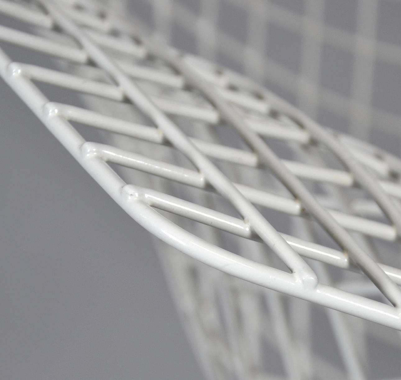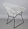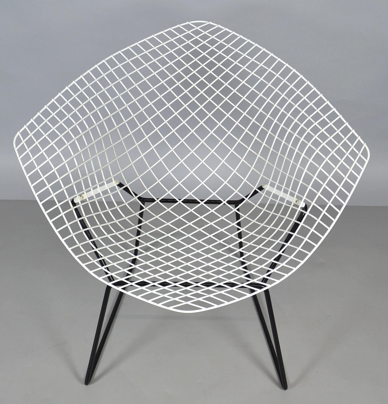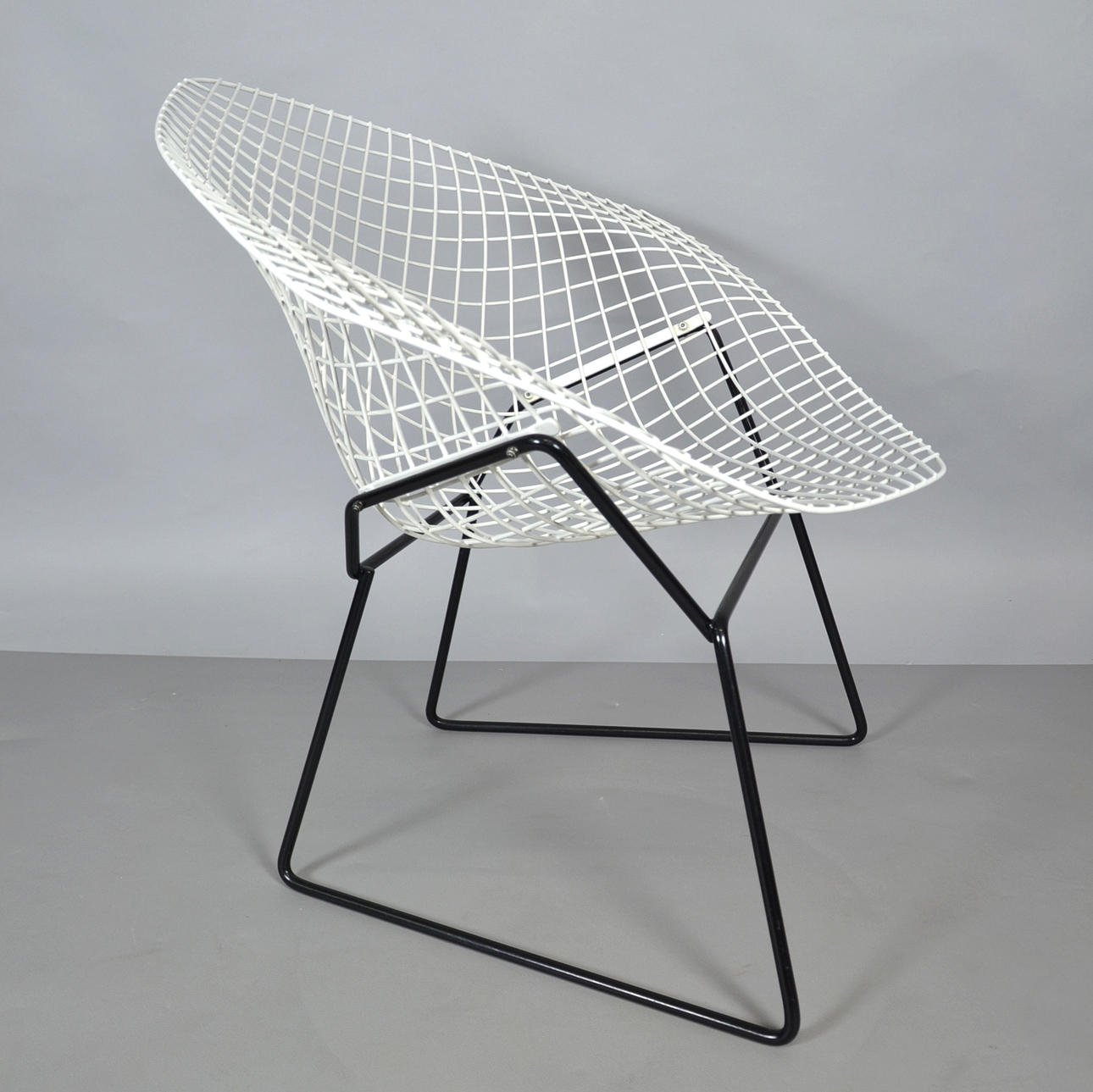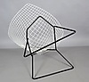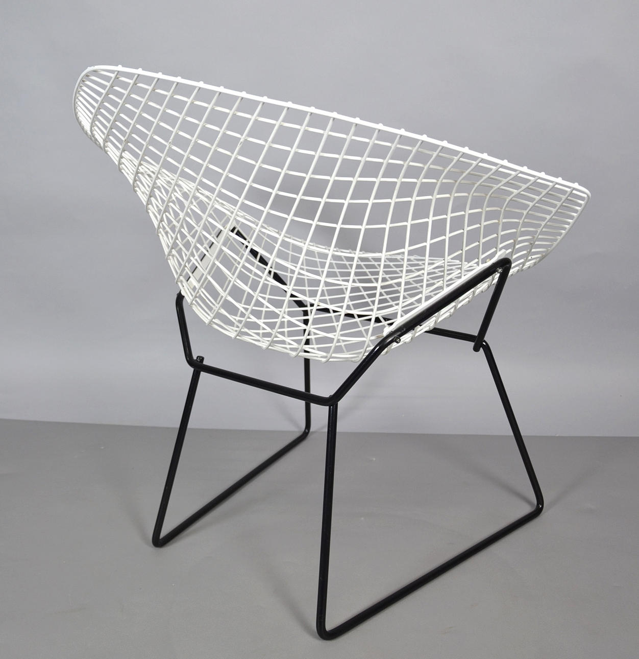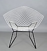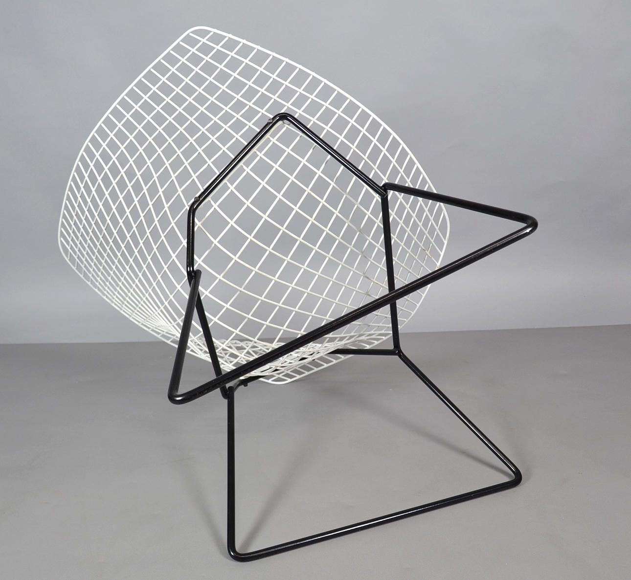 Diseño: Harry Bertoia de 1952 Fabricante: Knoll International Modelo: Diamond Chair Versión aprox. Estructura de metal de los años 60 lacado en blanco y negro SH. 41 cm, alto 75 cm, ancho. 85cm.