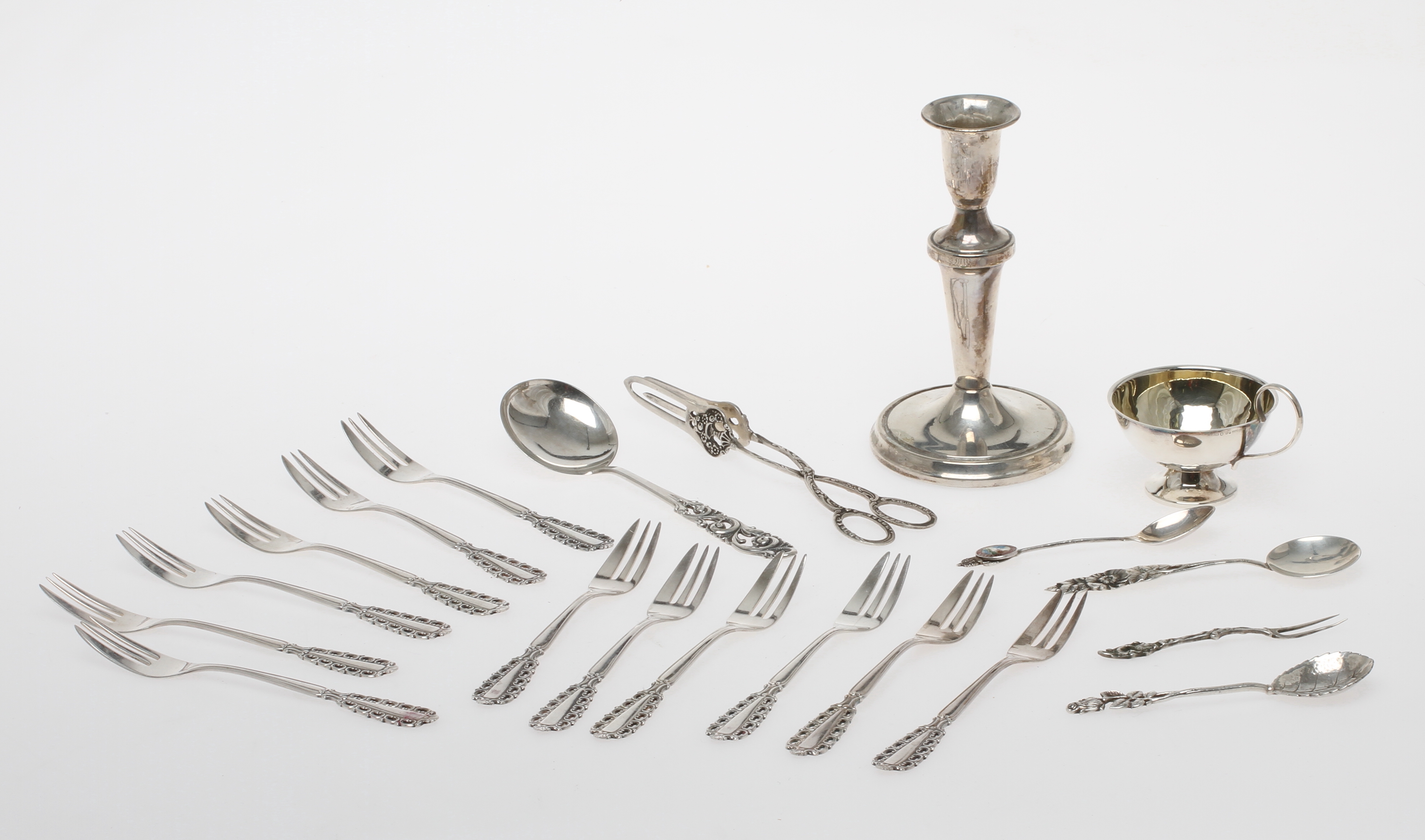 80720. Lote SILVER, incluyendo tenedores de postre, 1900.