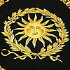 Base negra con motivo zodiacal amarillo, 88x88 cm aprox.