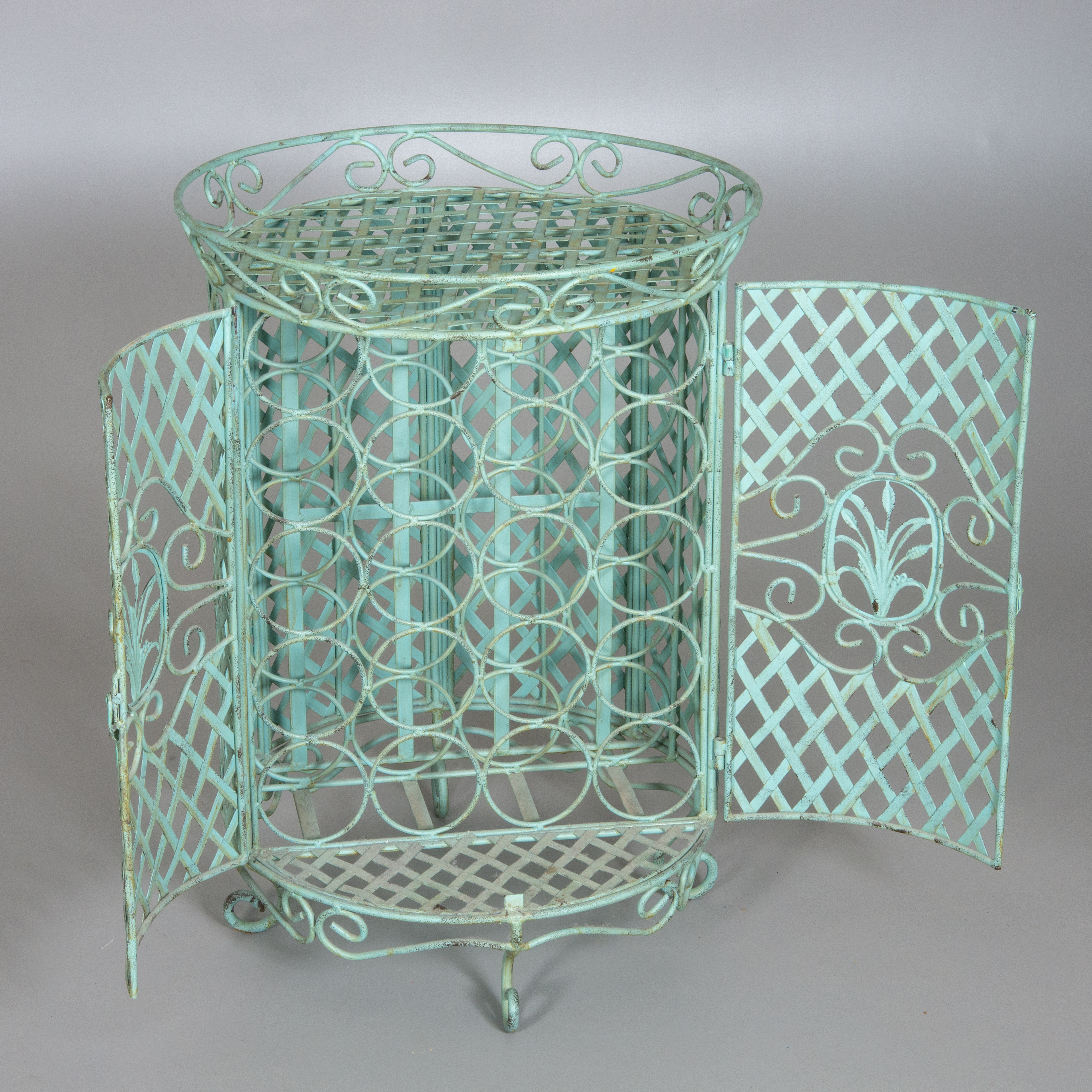 817822. Botellero, forja pintada de verde, espacio para 20 botellas.