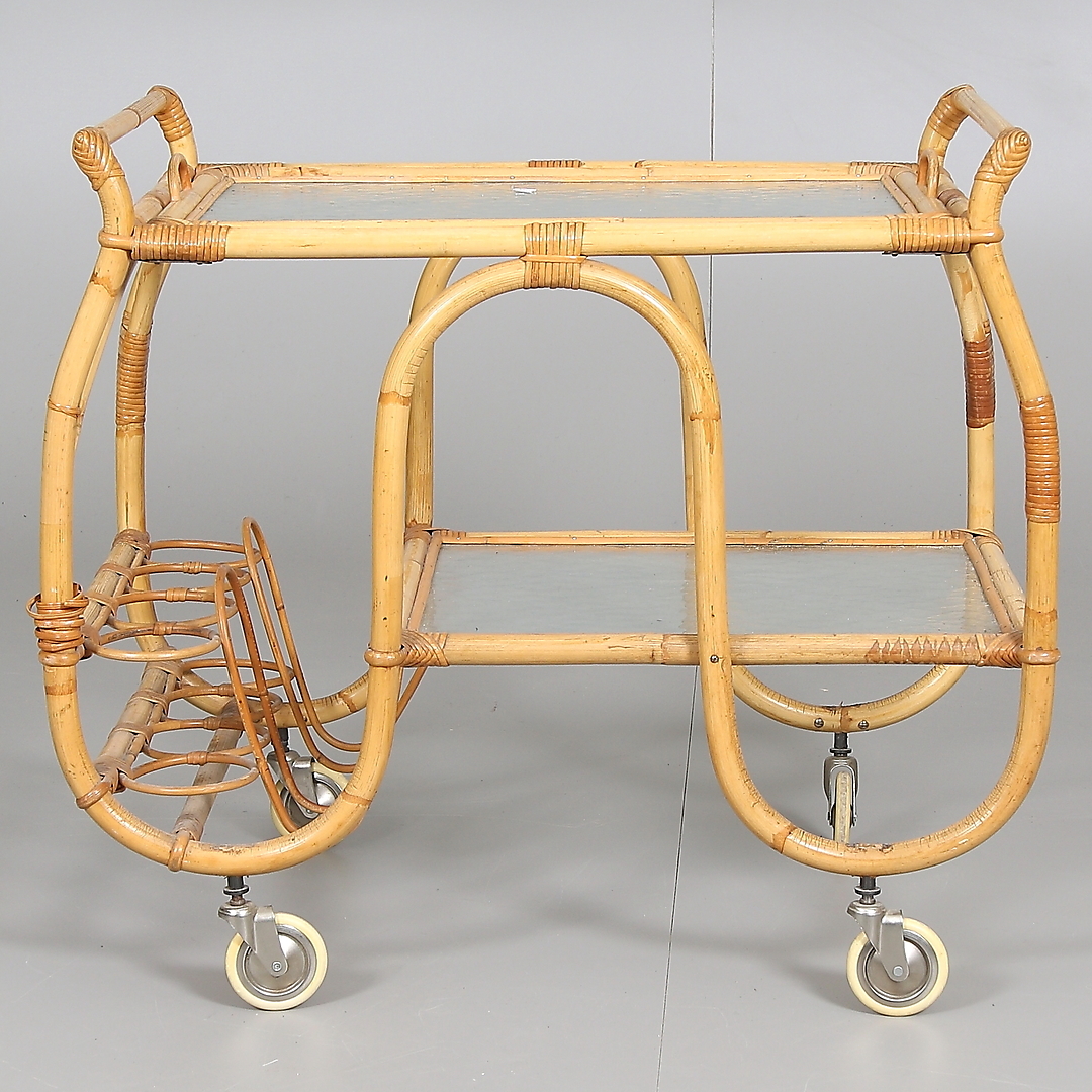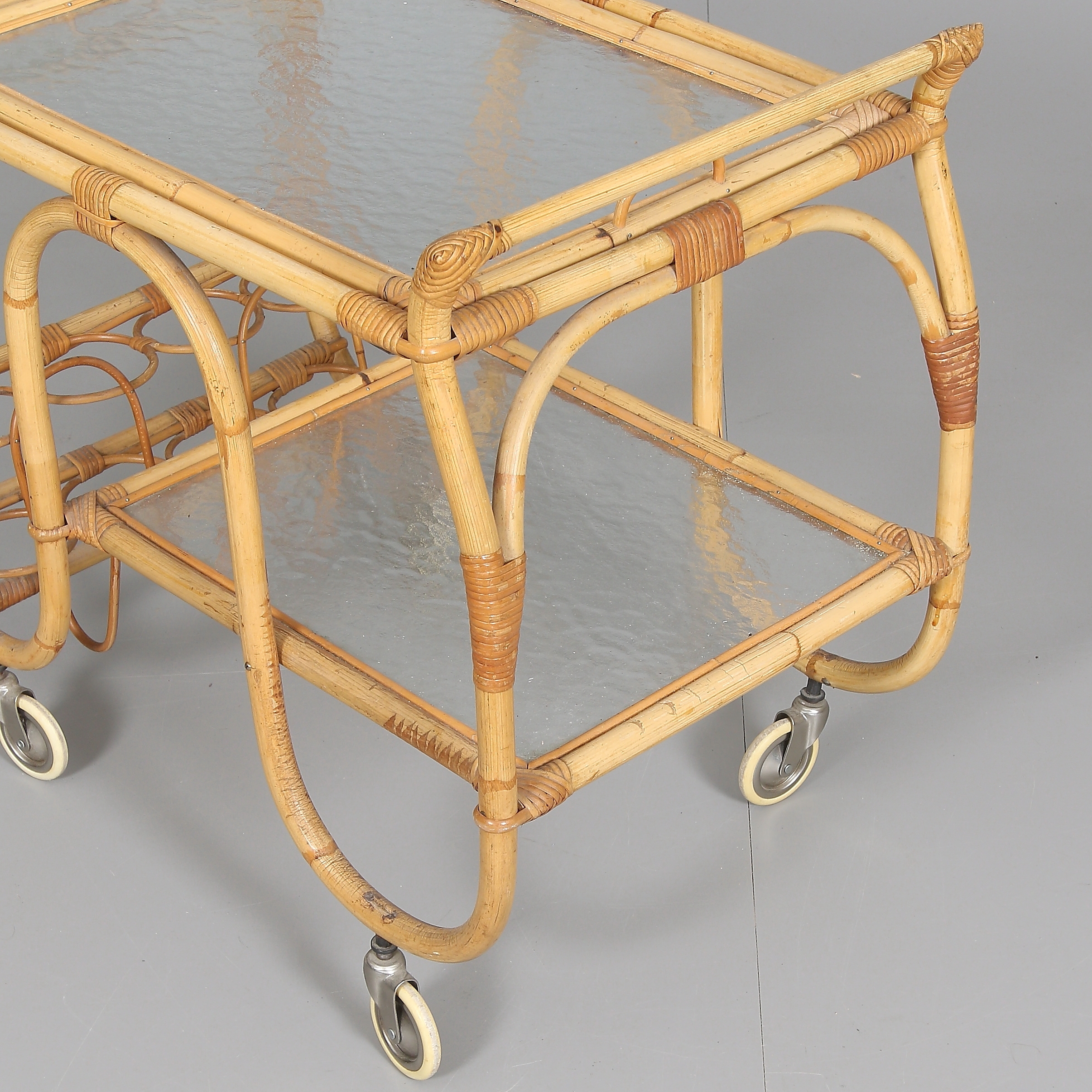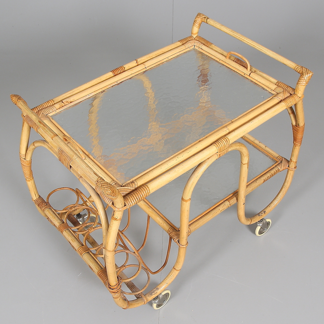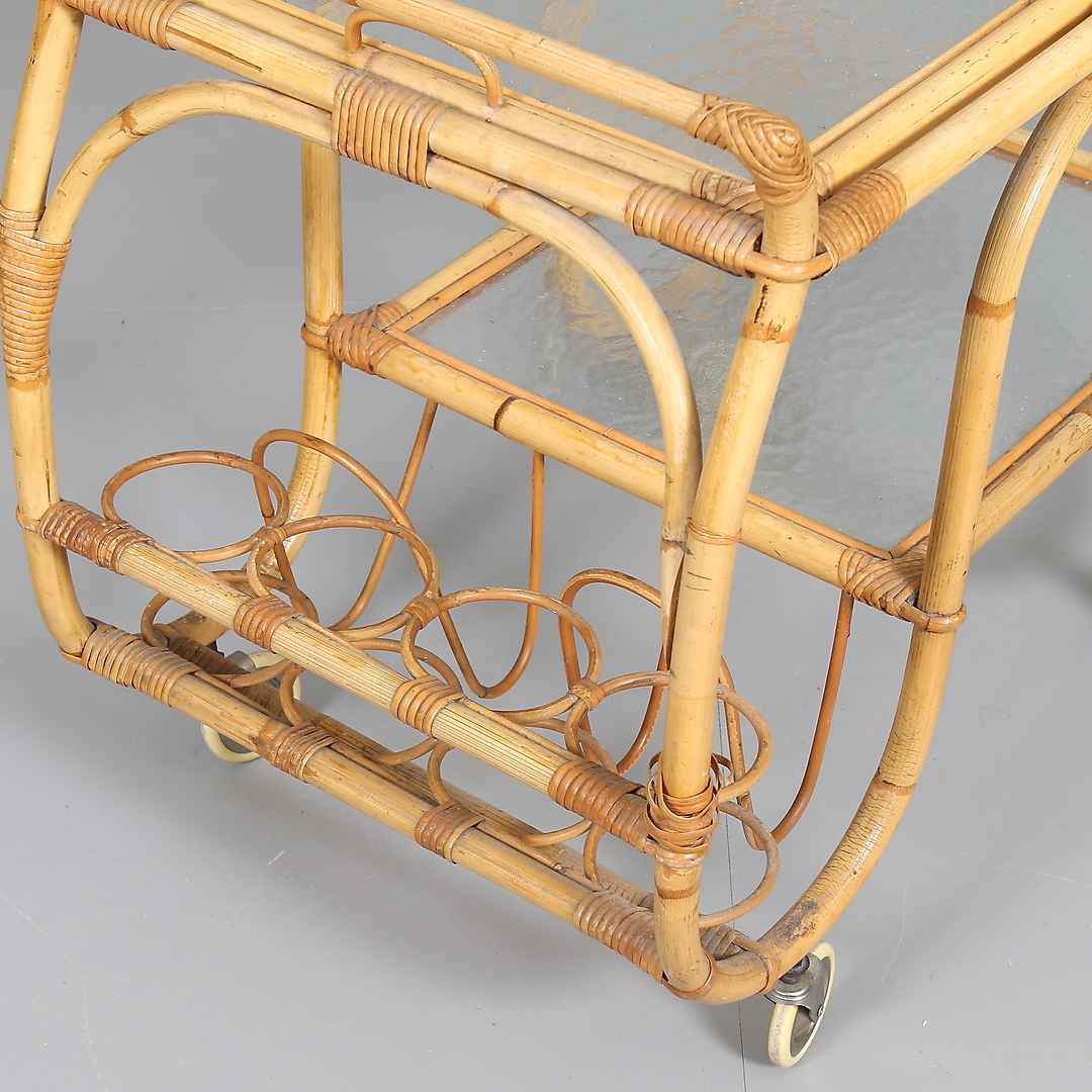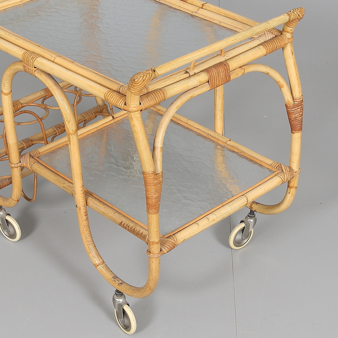 822301. CARRO DE SERVICIO, bambú, vidrio, siglo XX.