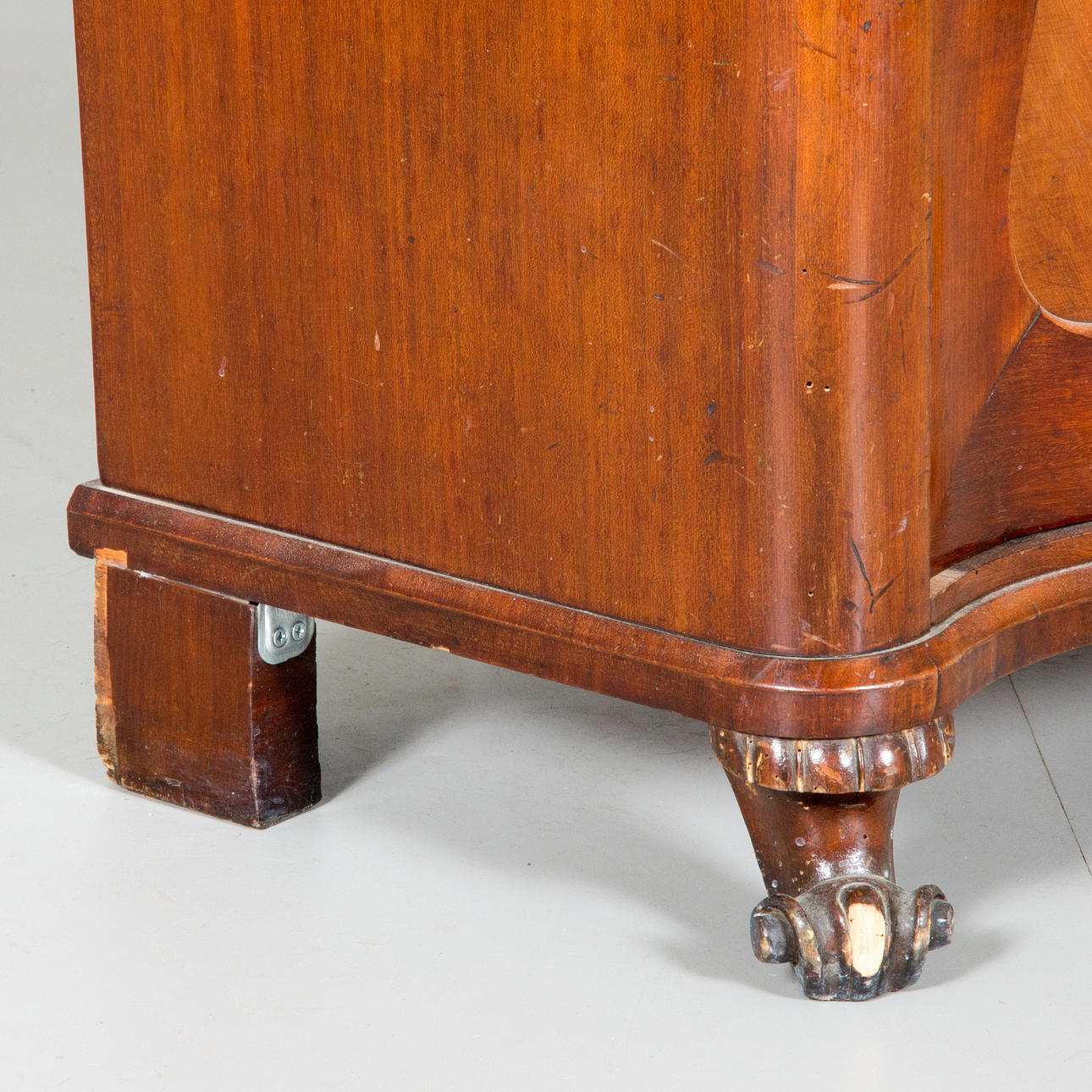 Un pie dañado y pequeños daños en la chapa.