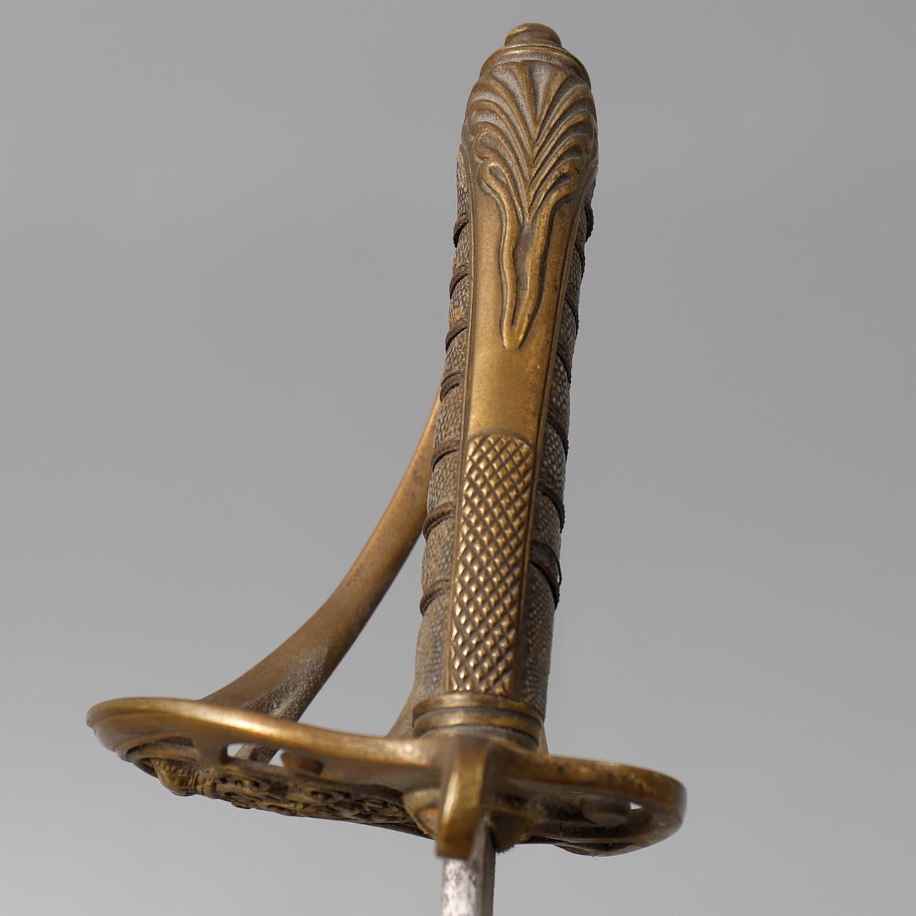 La espada y la vaina de un oficial de infantería victoriano y un talwar indio. Longitud total aproximada de 100 cm y 90 cm respectivamente.