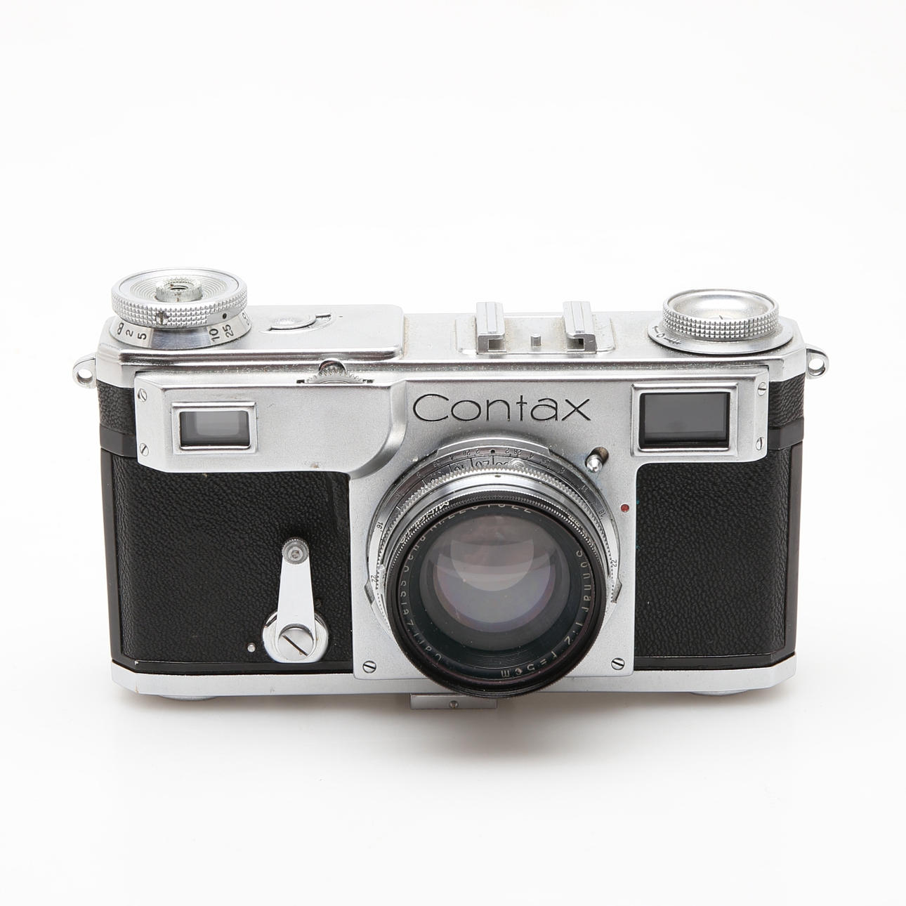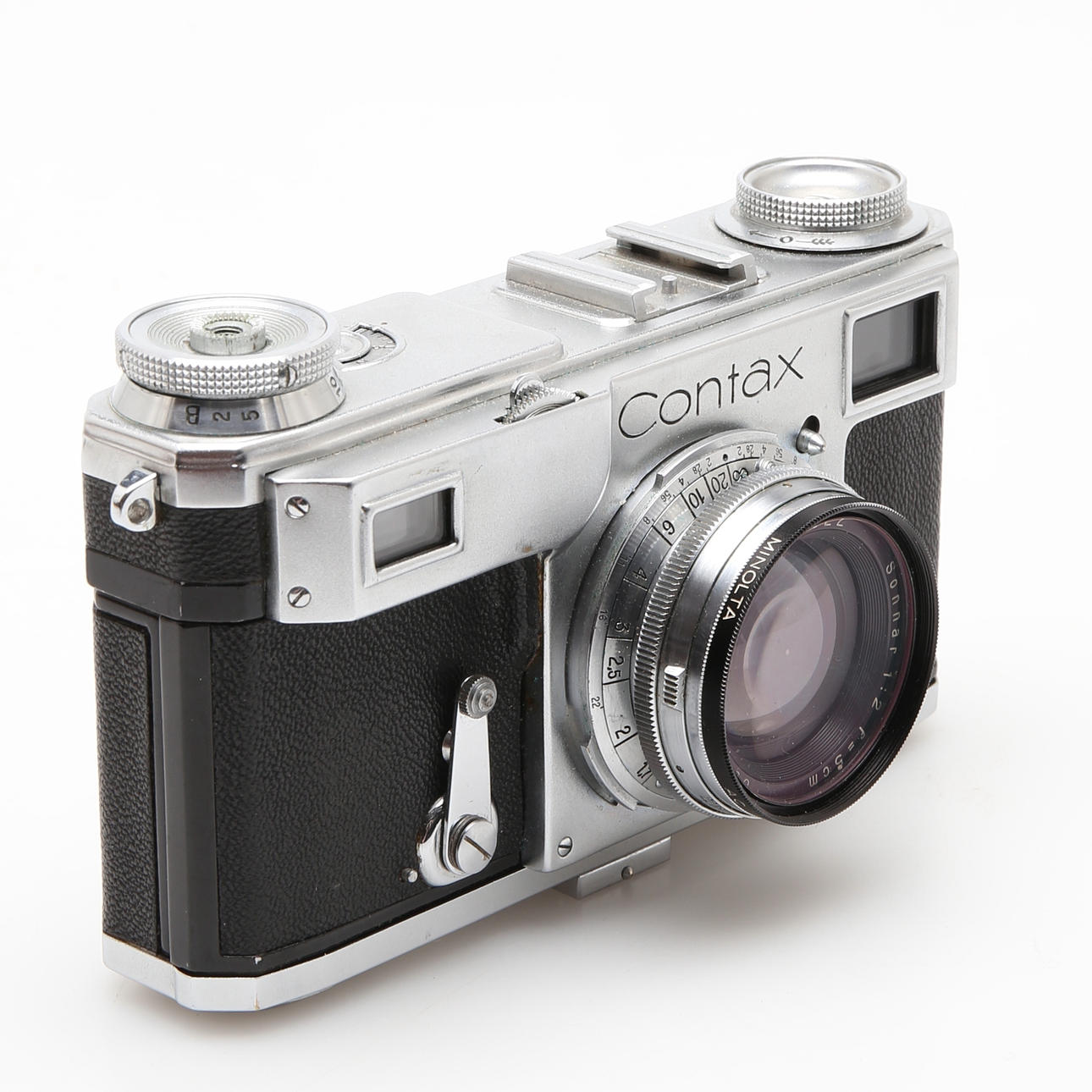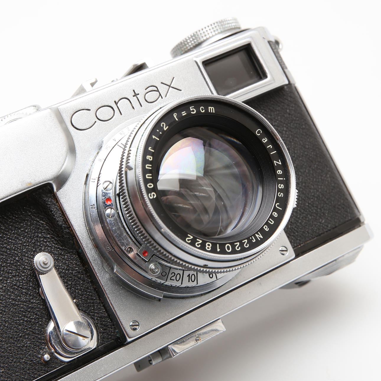 Cámara telemétrica Zeiss Ikon Contax II con lente Carl Zeiss Sonnar 1:2 f = 5 cm. Número de serie F. 45755 (1937) Filtro tragaluz incluido.