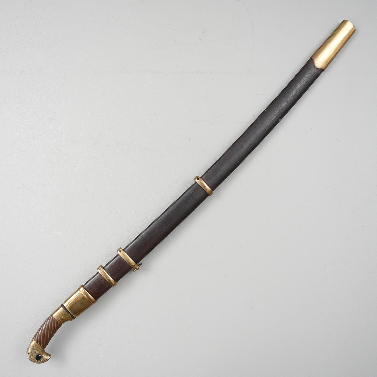 Tina de cuero con herrajes de latón.