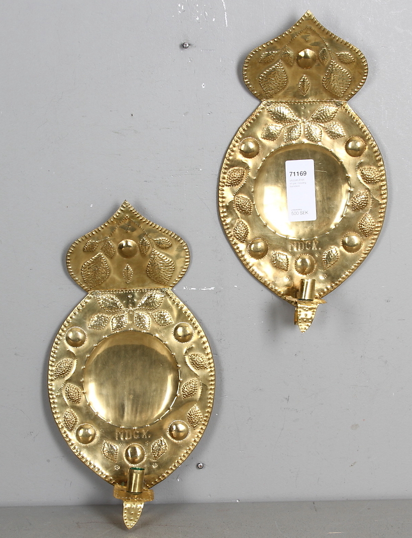 87061. PLACAS DE PARED, par, latón, estilo barroco.