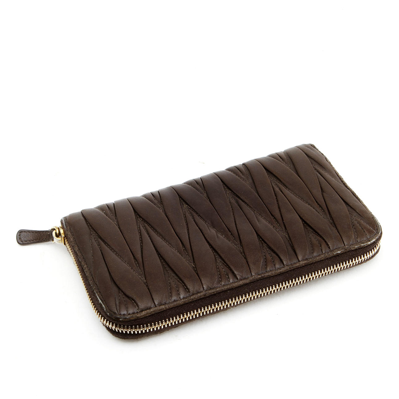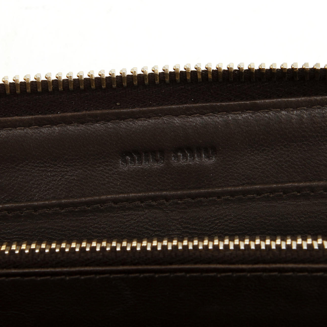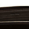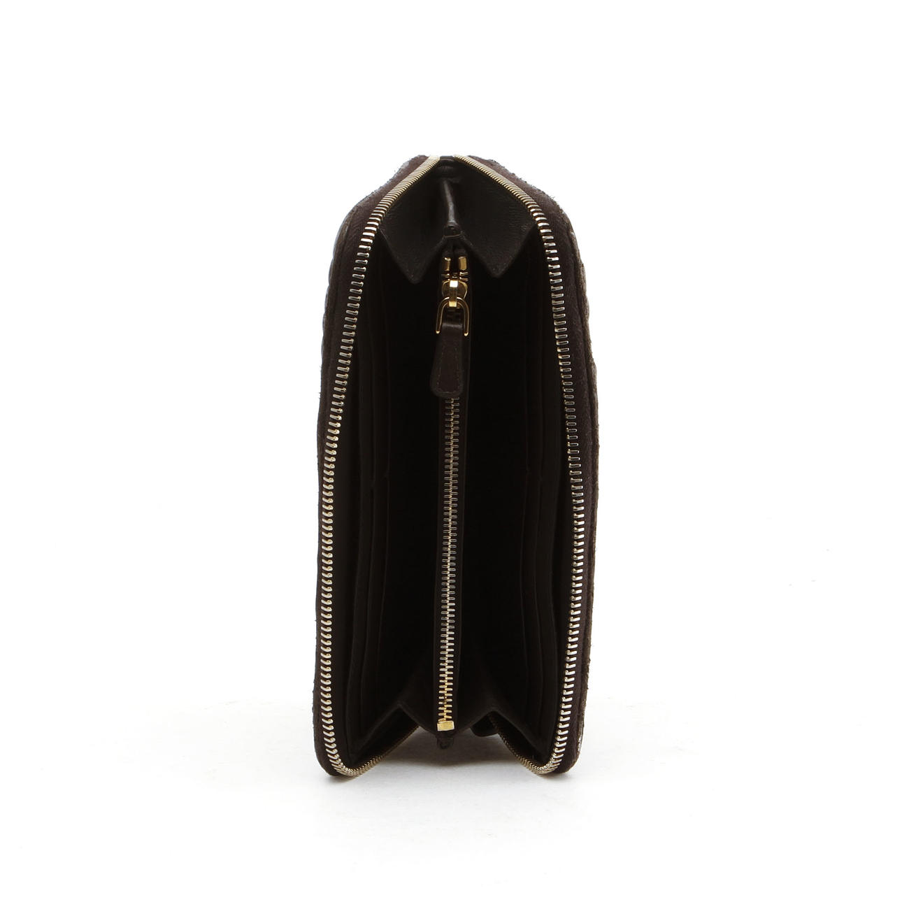 Dimensiones 19,5 x 11 cm. Piel napa negra, detalles en metal amarillo. 8 ranuras para tarjetas. Un compartimento interior con cremallera.