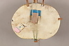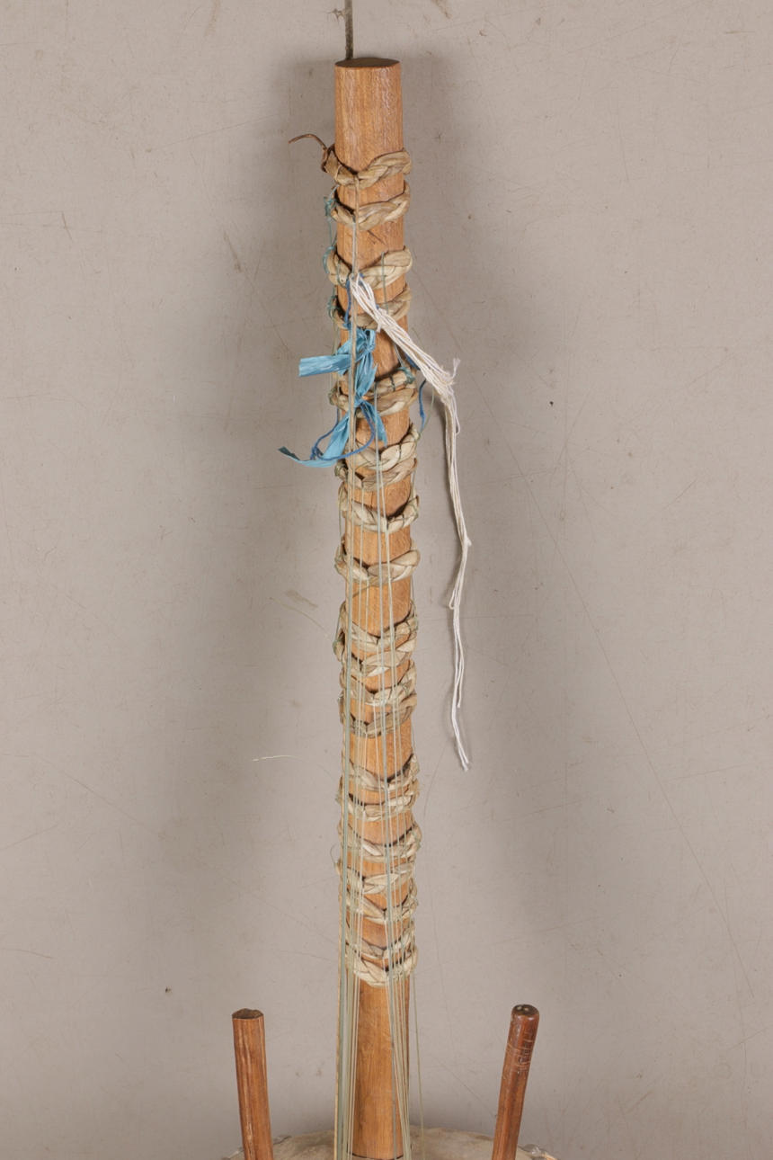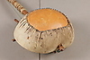 Largo aprox: 107 cm, cuerpo hecho de media calabaza cubierta con cuero de vaca, hilos de nylon. Decorado con remaches de metal.