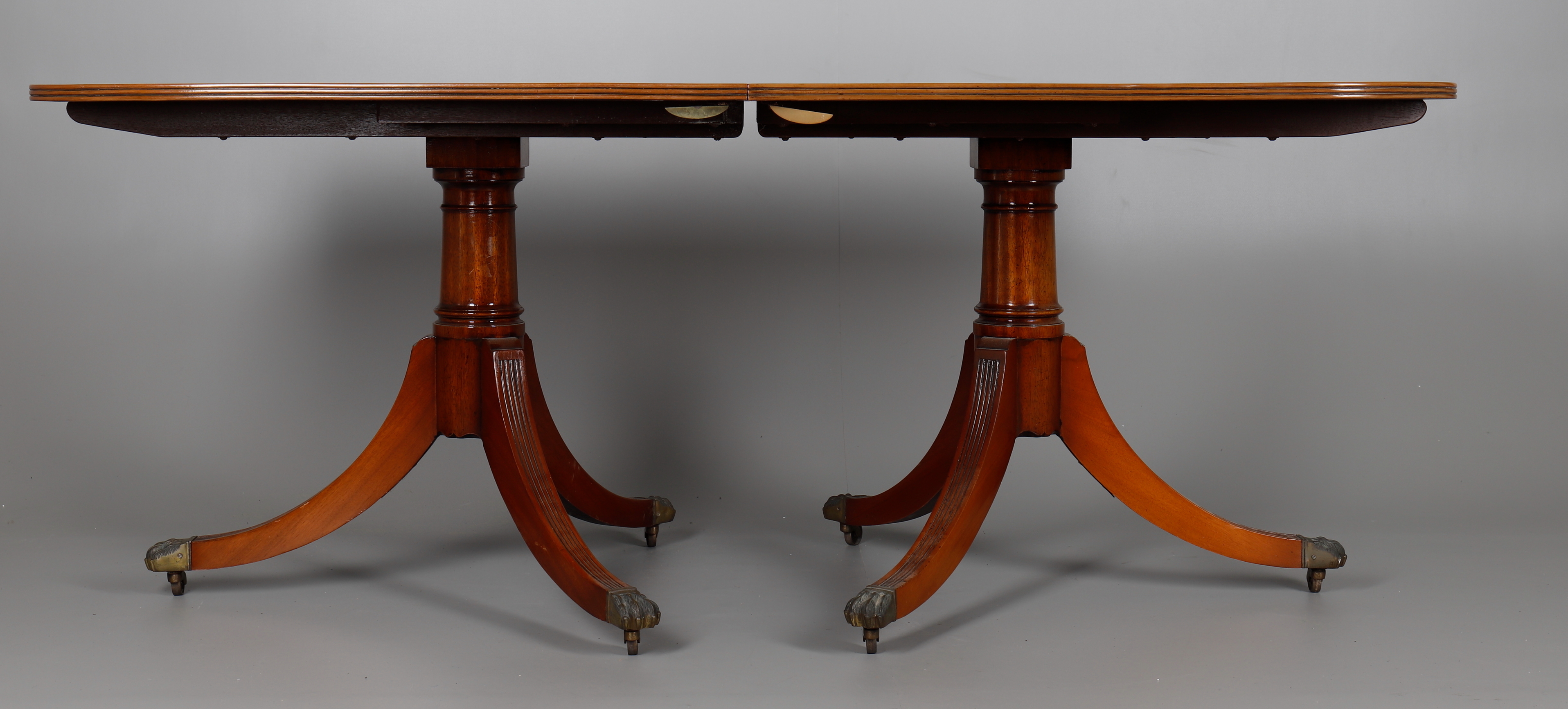 891944. MESA DE COMEDOR DE CAOBA CON DOS PILARES.