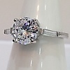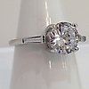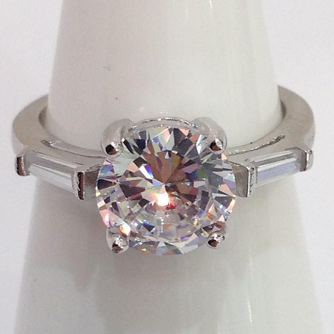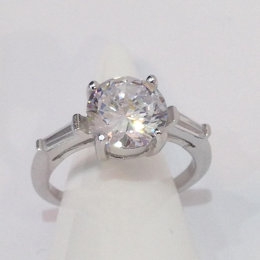 Este anillo es de plata (con el sello "925"). El anillo está engastado con una gran piedra de zirconia cúbica blanca redonda de corte brillante en una montura de cuatro garras.