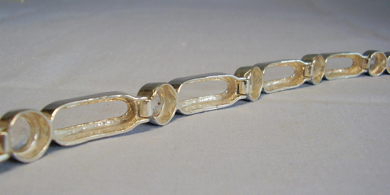 La pulsera es de plata 925 y punzonada, también tiene la marca del taller de Theodor Klotz, Pforzheim de los años 50.