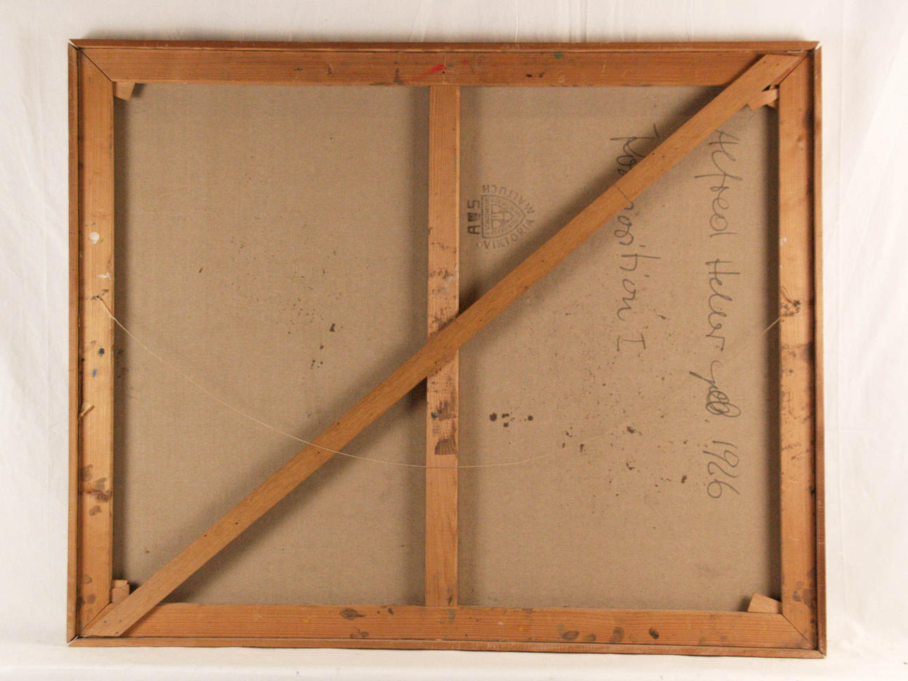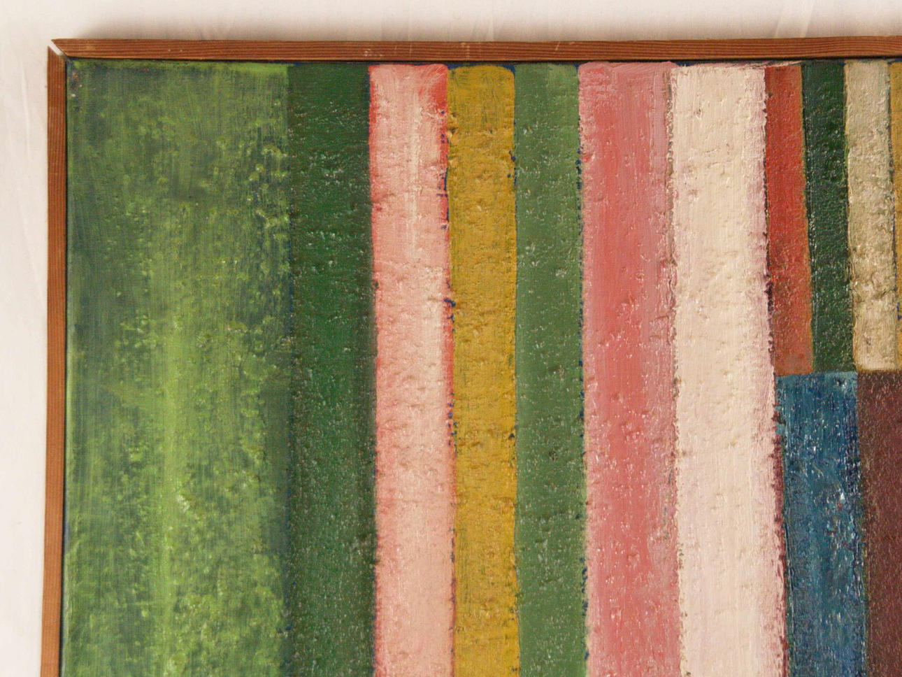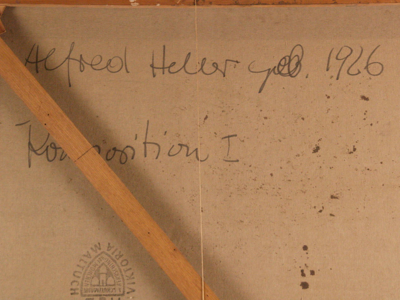 Heller, Alfred (1926-Bamberg-2012) - "Composición I", óleo sobre lienzo, firmada abajo a la izquierda, composición abstracta con rayas de colores, firmada y titulada al dorso, ca.80x100cm, enmarcada.