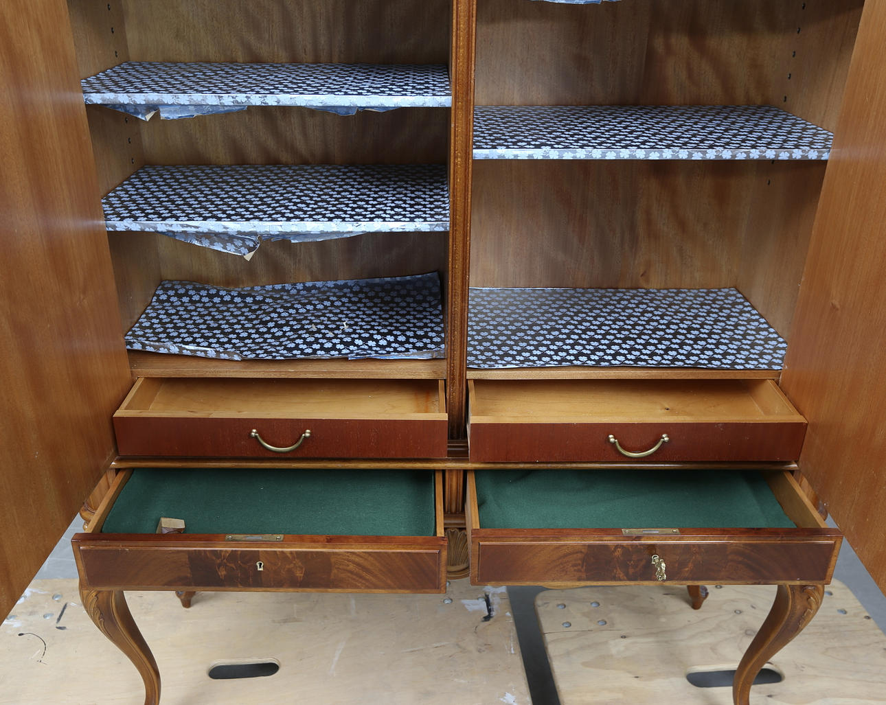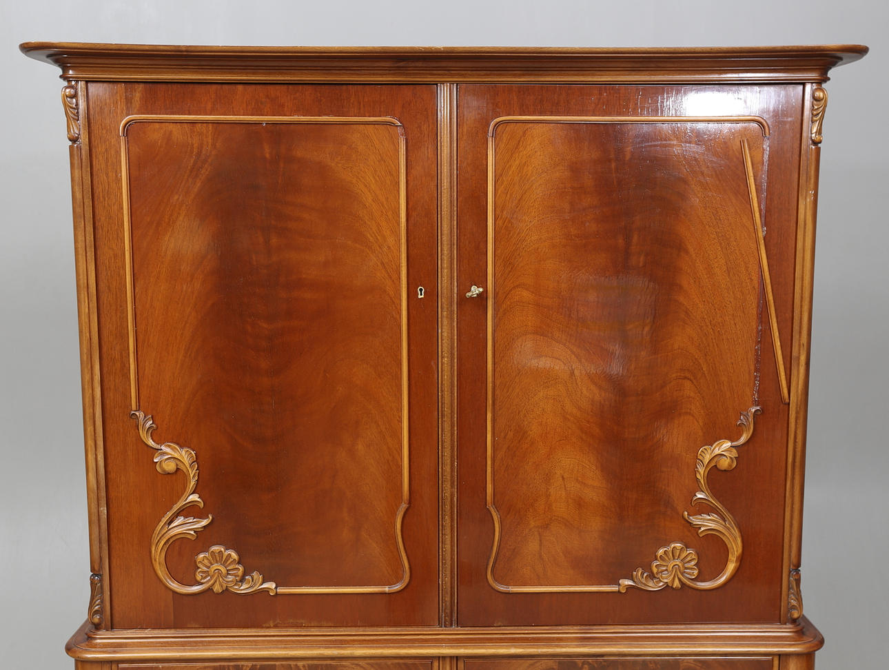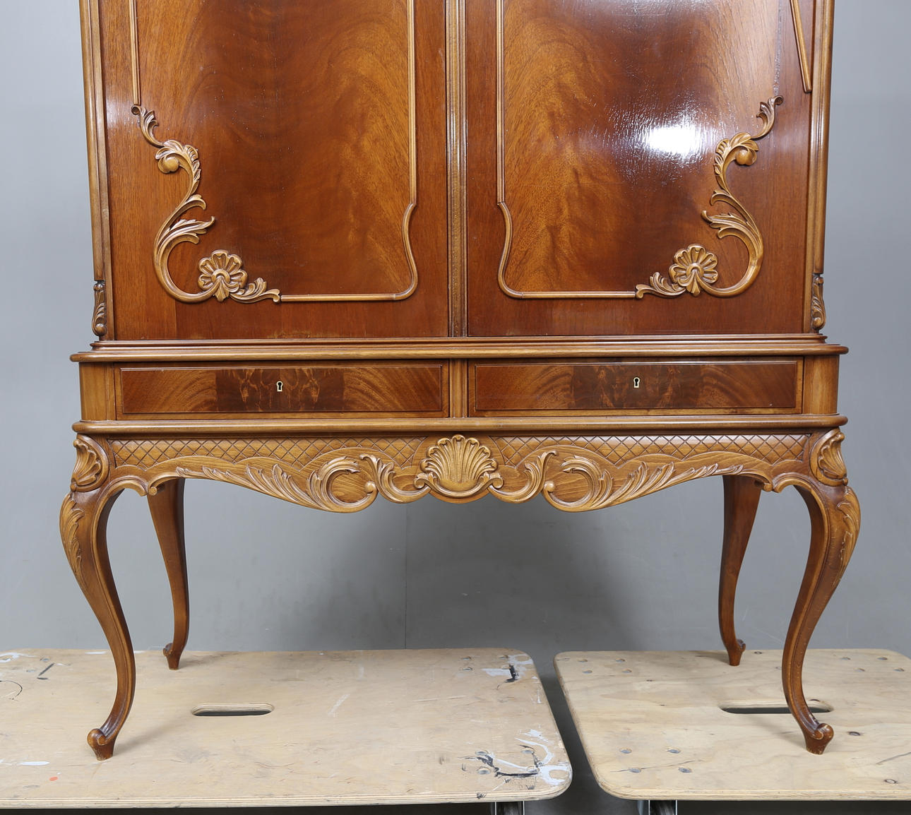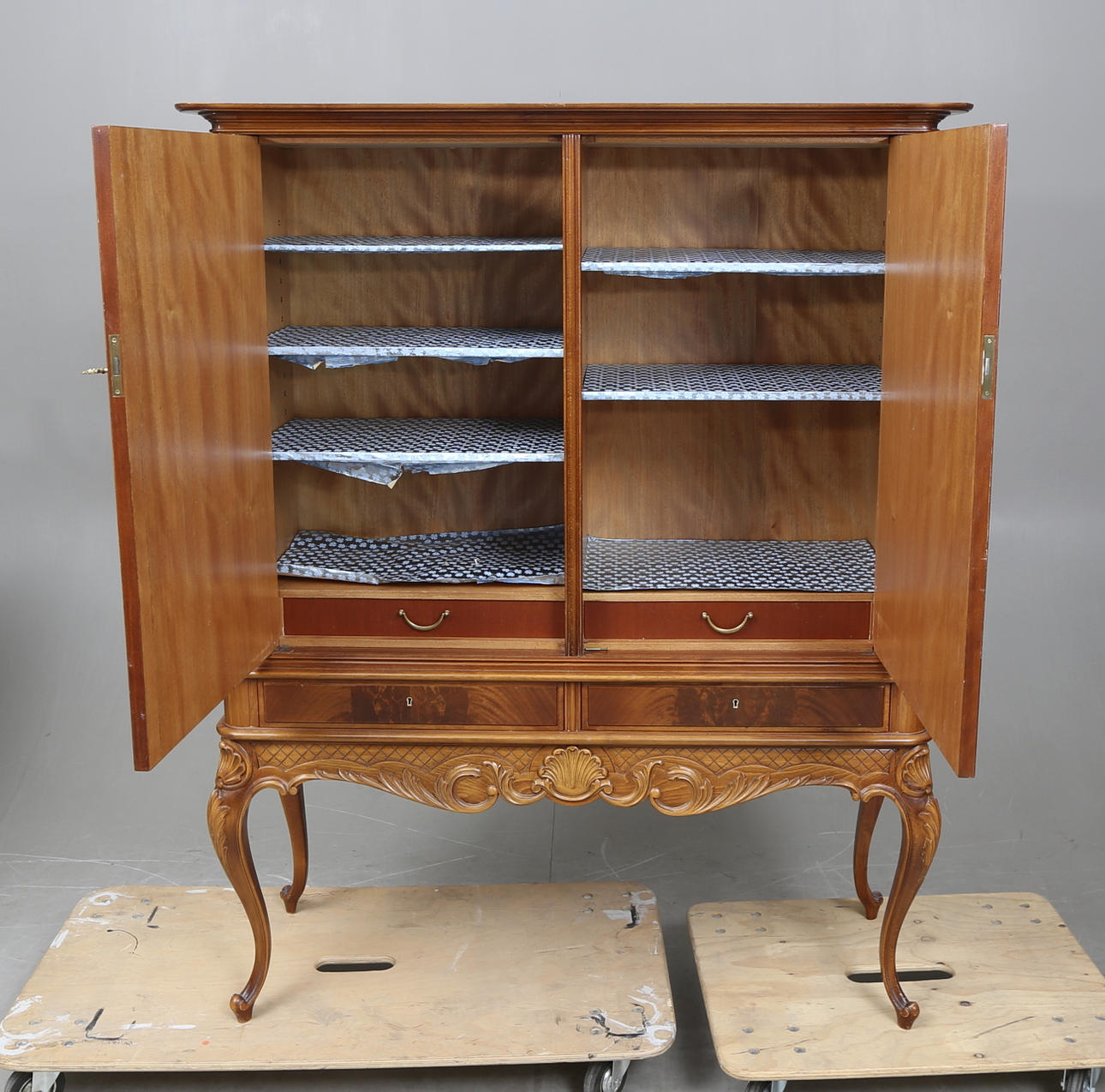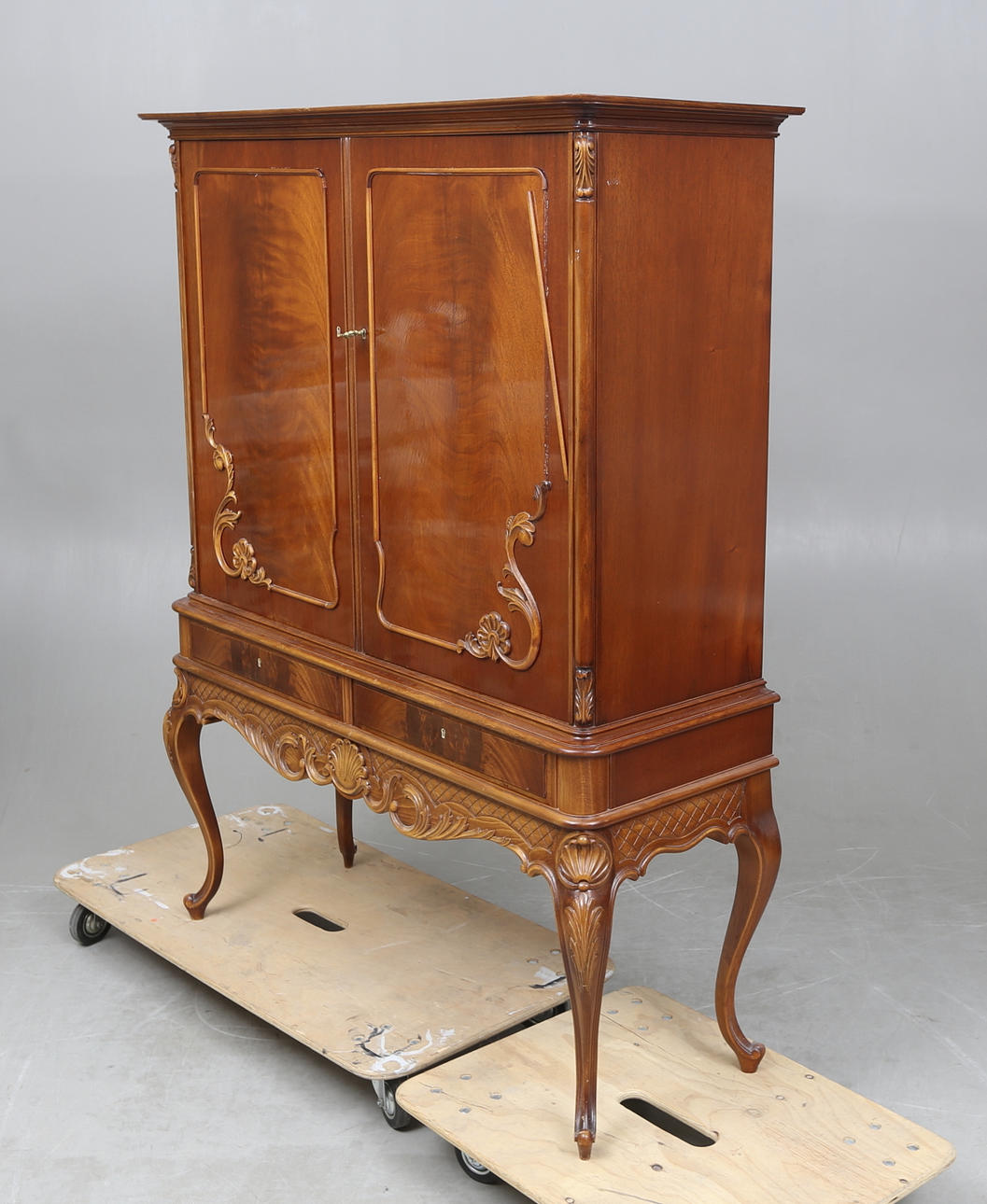 Caoba, longitud aprox. 122, ancho 43, altura 159 cm.