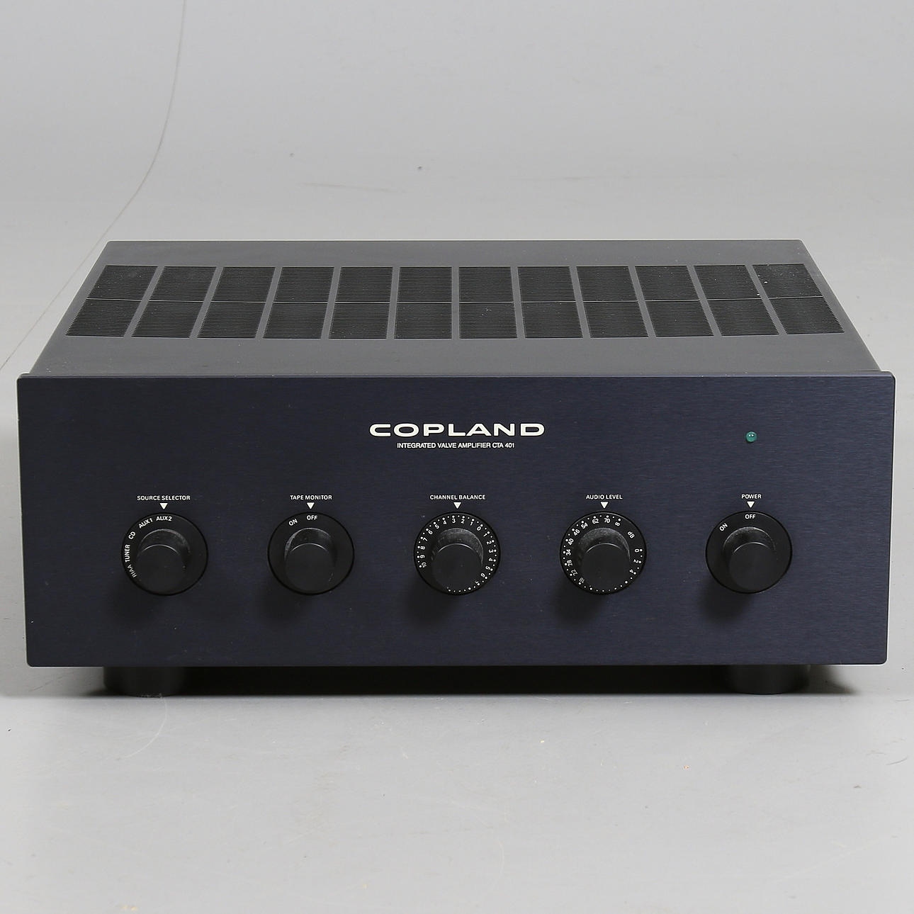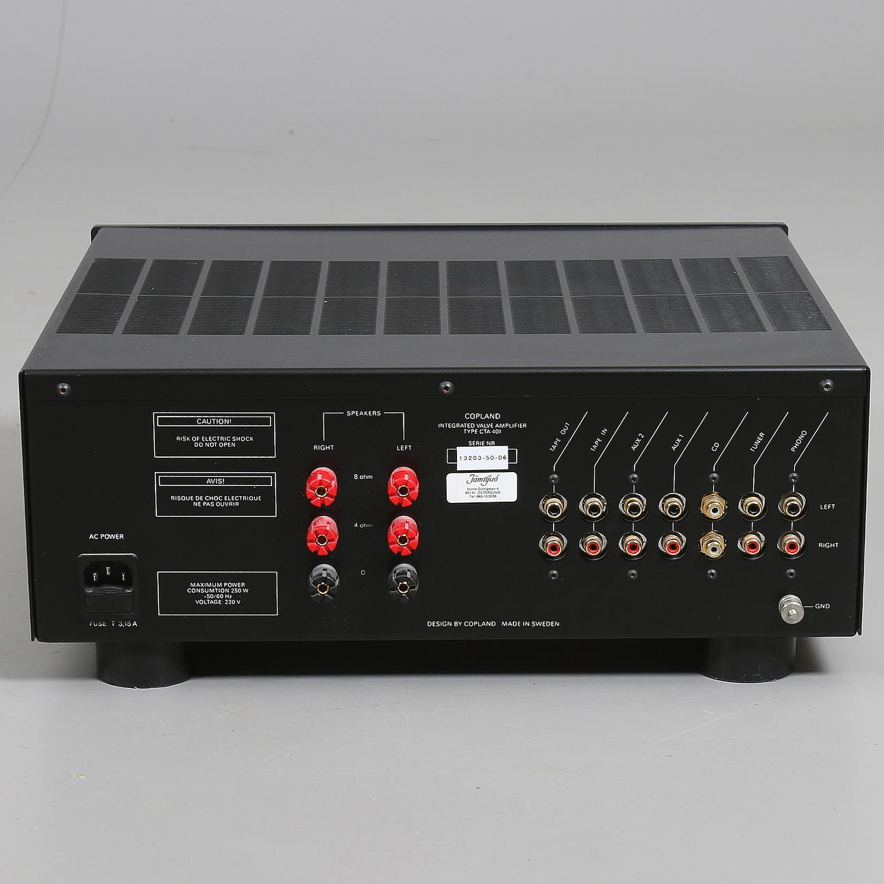 Amplificador de válvulas integrado. Potencia: 30W+30W (Ultralineal) 7 pares de entradas. Largo 430, ancho 375, alto 175 cm. Peso 23 kg.